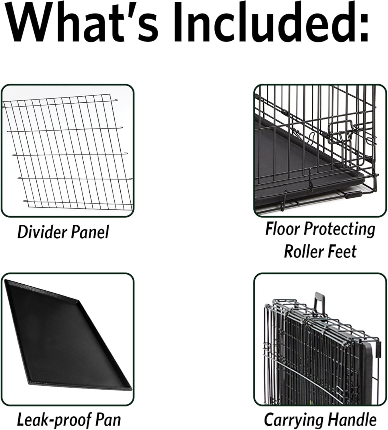 Customizable Fit: Divider panel adjusts living space for growing dogs; leak-proof plastic pan included for easy cleanup