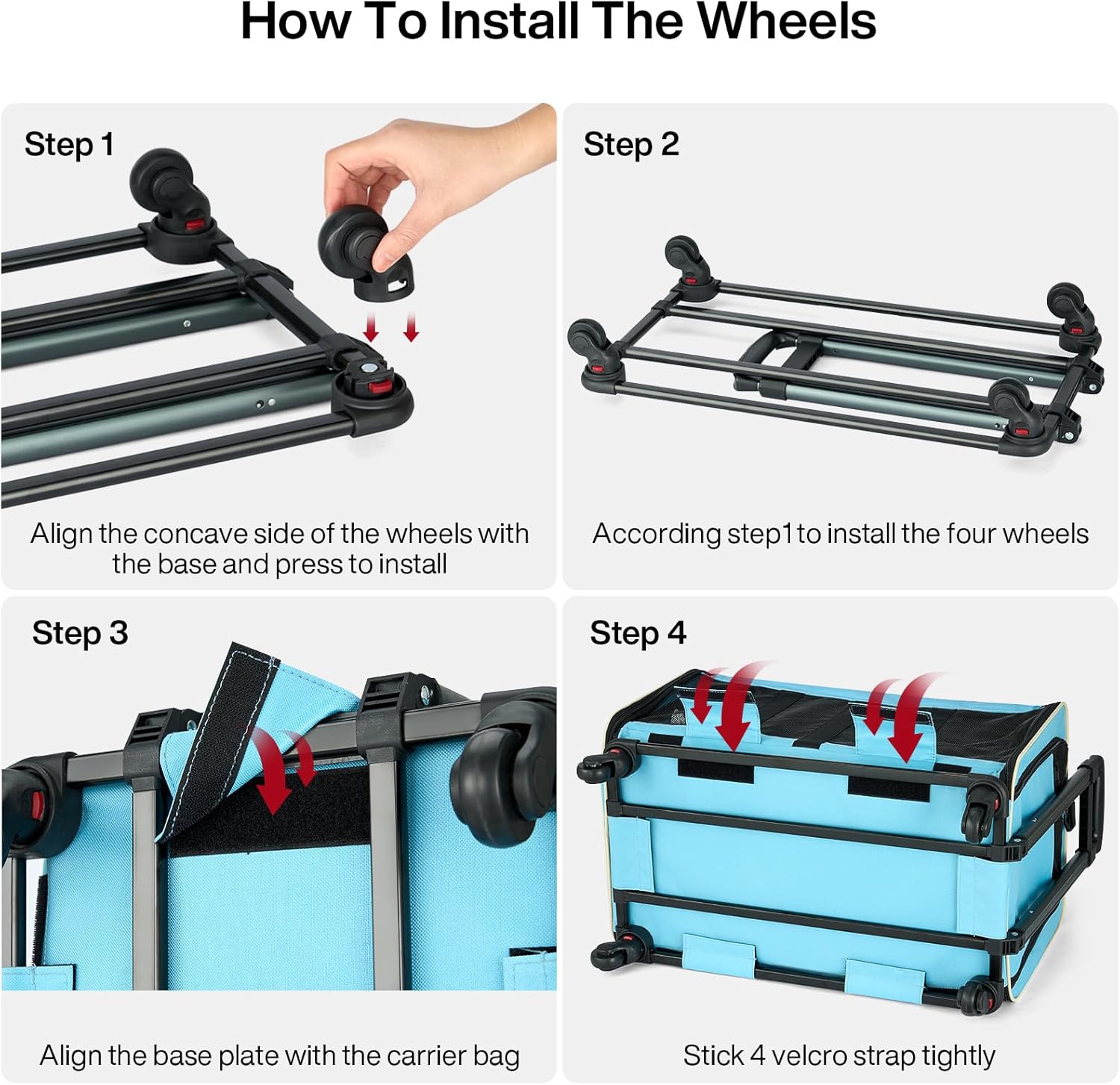 Hands-Free: MILADA cat carrier with wheels have 360° spinner wheels and a detachable chassis, can ensure a smooth as pulling a suitcase and comfortable riding experience for the rolling cat carrier on uneven road surfaces or any road condition. When you travel camp with your pets, going to veterinary clinics, can reduce your travel pressure