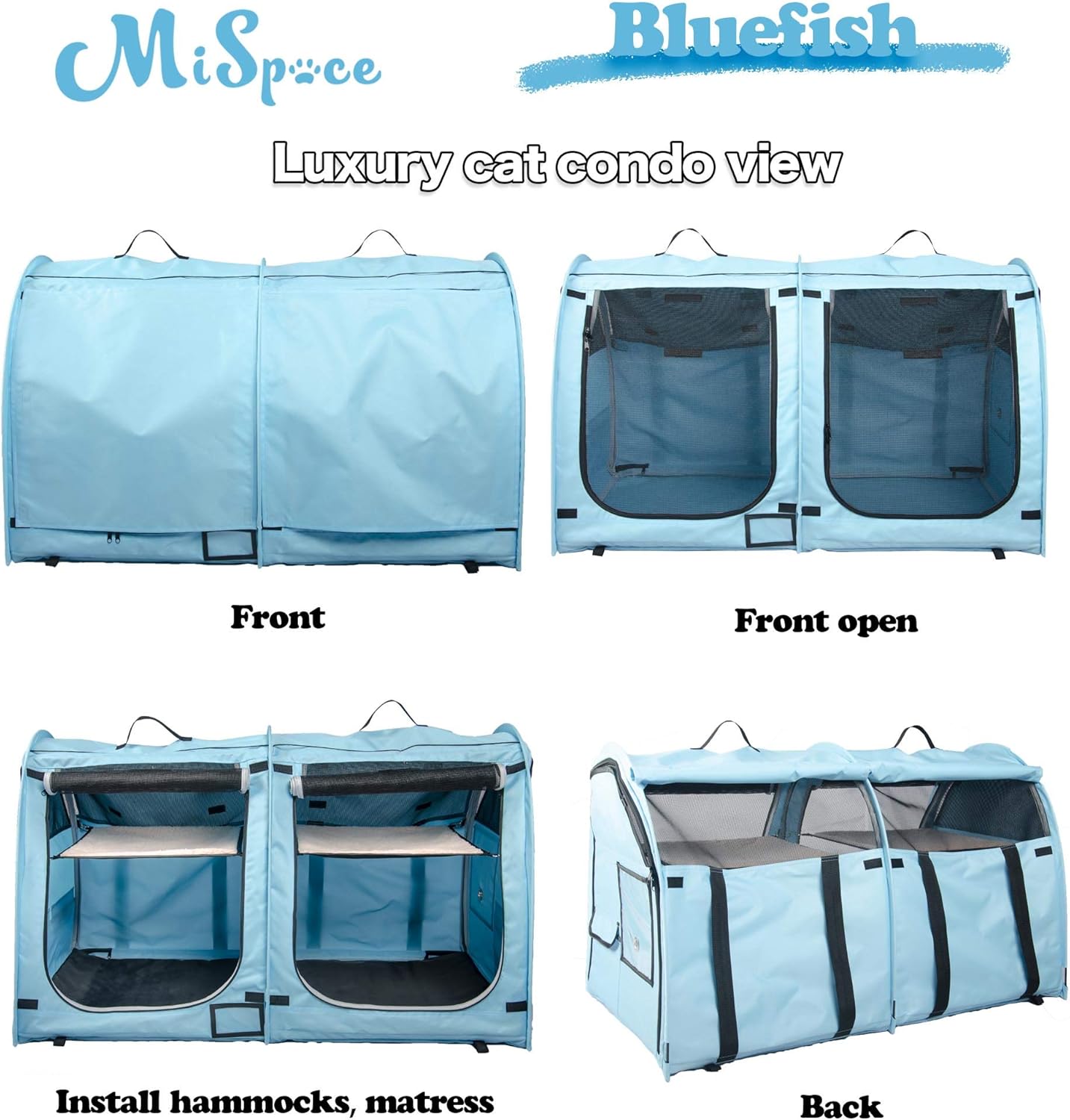 Mispace Portable Twin Compartment Show House Cat Cage/Condo – Easy to Fold & Carry Kennel – Comfy Puppy Home & Dog Travel Crate with Portable Carry Bag/Two Hammocks/Mats and Collapsible Litter Box