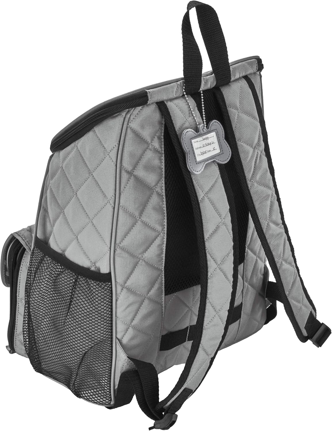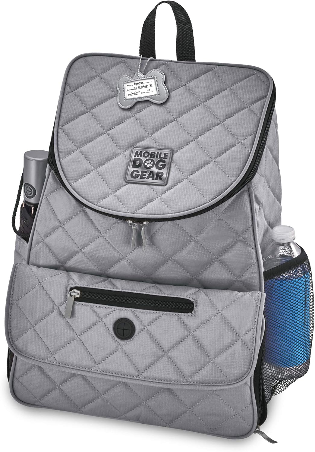 Mobile Dog Gear, Dog Travel Bag, Deluxe Quilted Weekender Backpack, Includes Lined Food Carriers and 2 Collapsible Dog Bowl, Gray