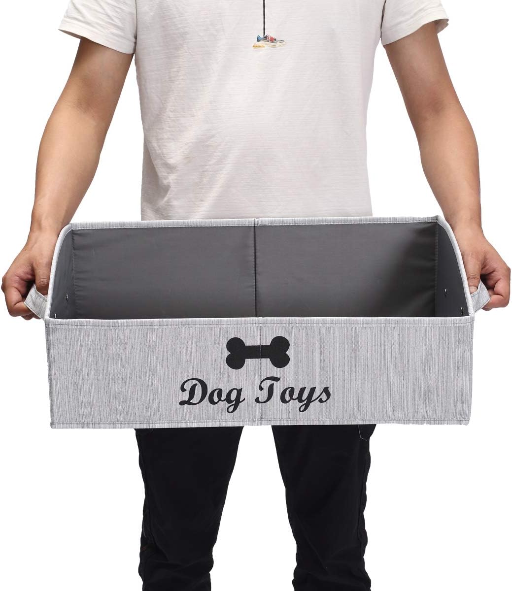 Morezi Dog Toy Basket – Organize Pet Toys, Blankets, Leashes, Chews in Living Room, Playroom, Closet, Shelf – Grey