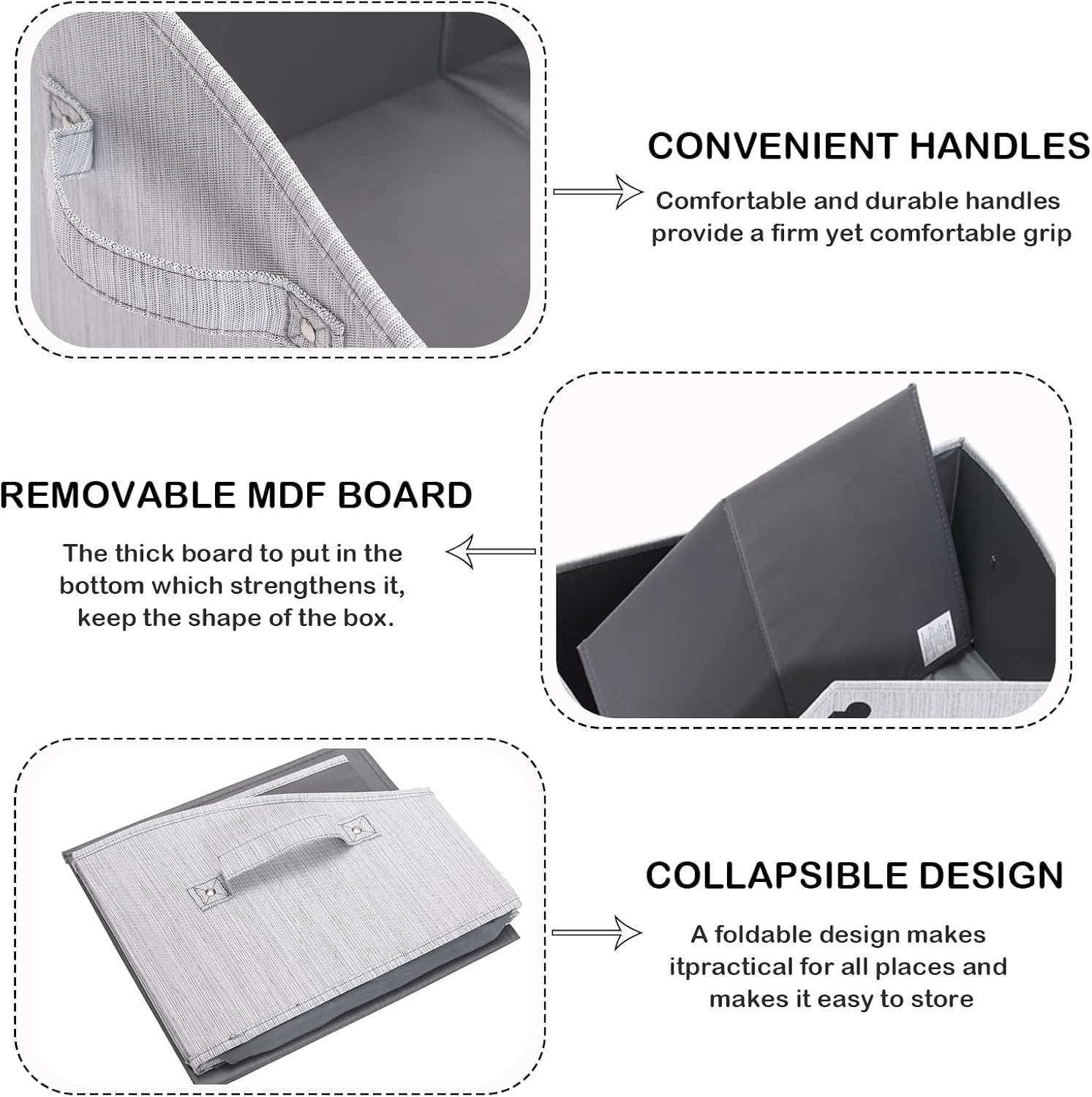 5: Easy to clean – It can use wrung-out wet cloth to wipe the surface of basket. It’s hand washable. Collapsible dog toy bin saves space when not in use — Folds flat for easy storage under bed, behind door, on shelf.