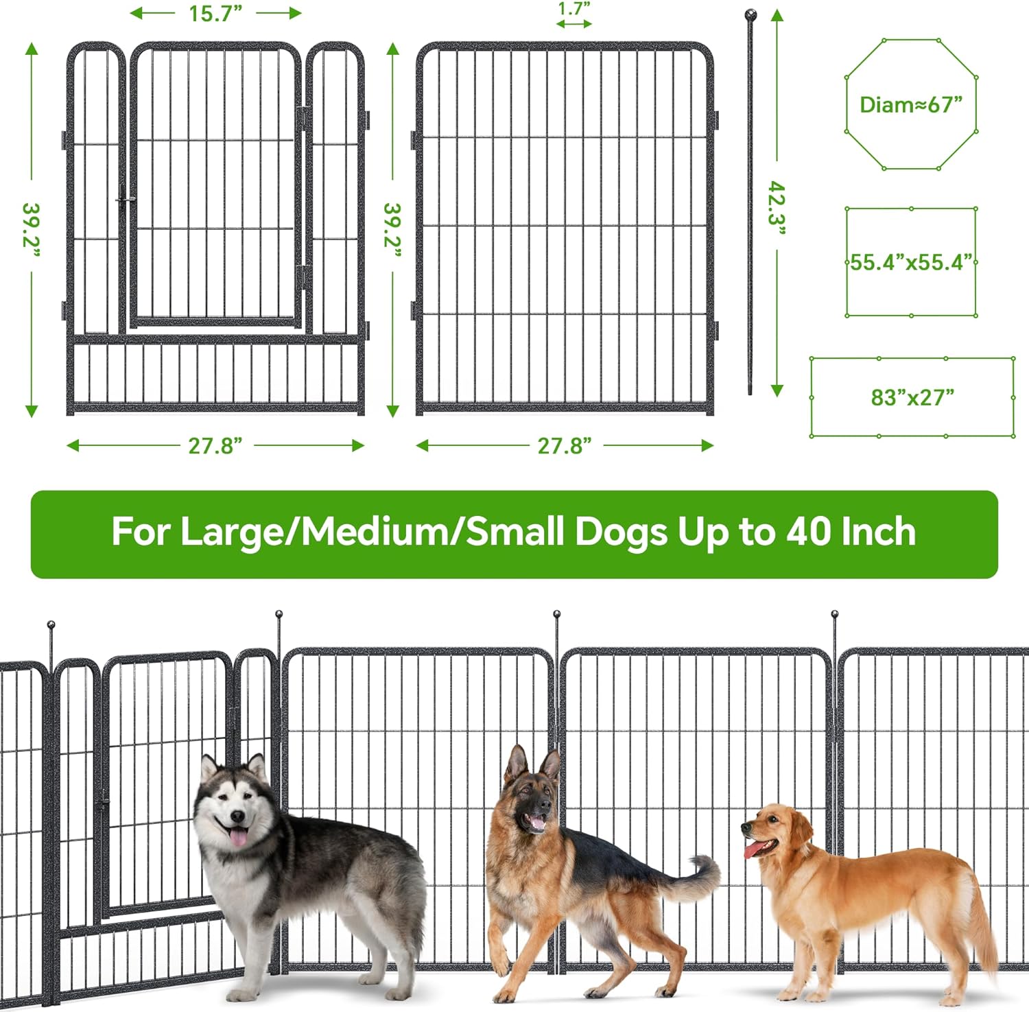 Mr Ironstone Dog Playpen with Anti-Rust Coating – 40″ Height 8 Panels Portable & Foldable Indoor/Outdoor Pet Fence for Large, Medium, or Small Dogs – Durable Exercise Pen