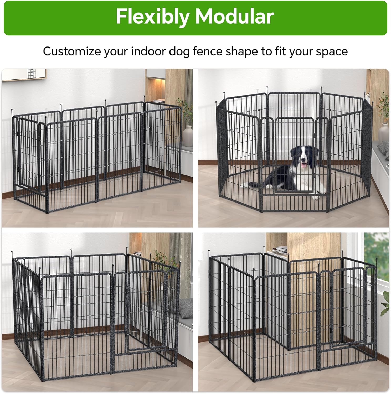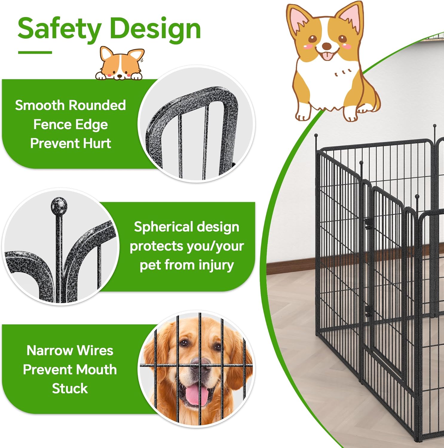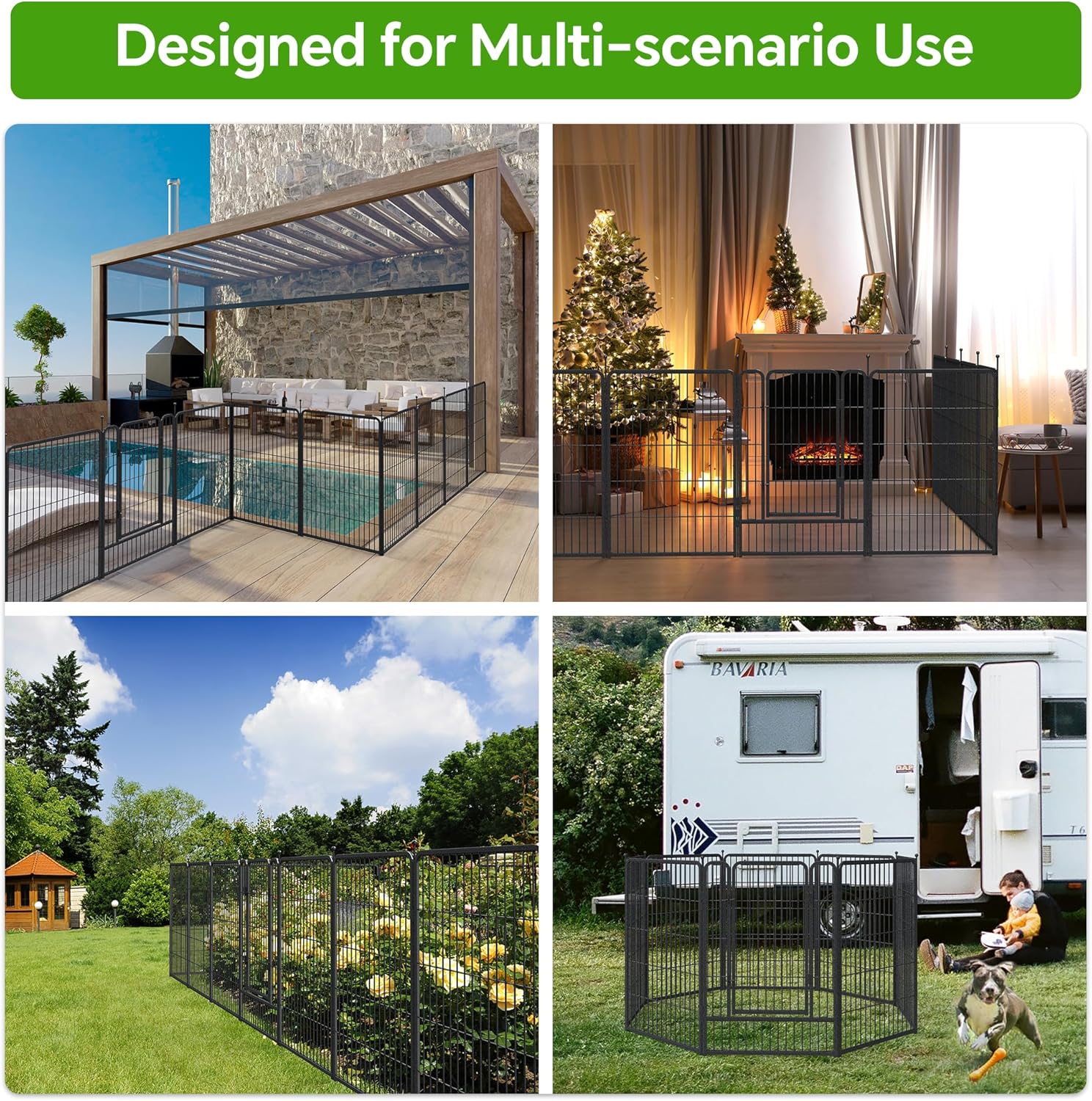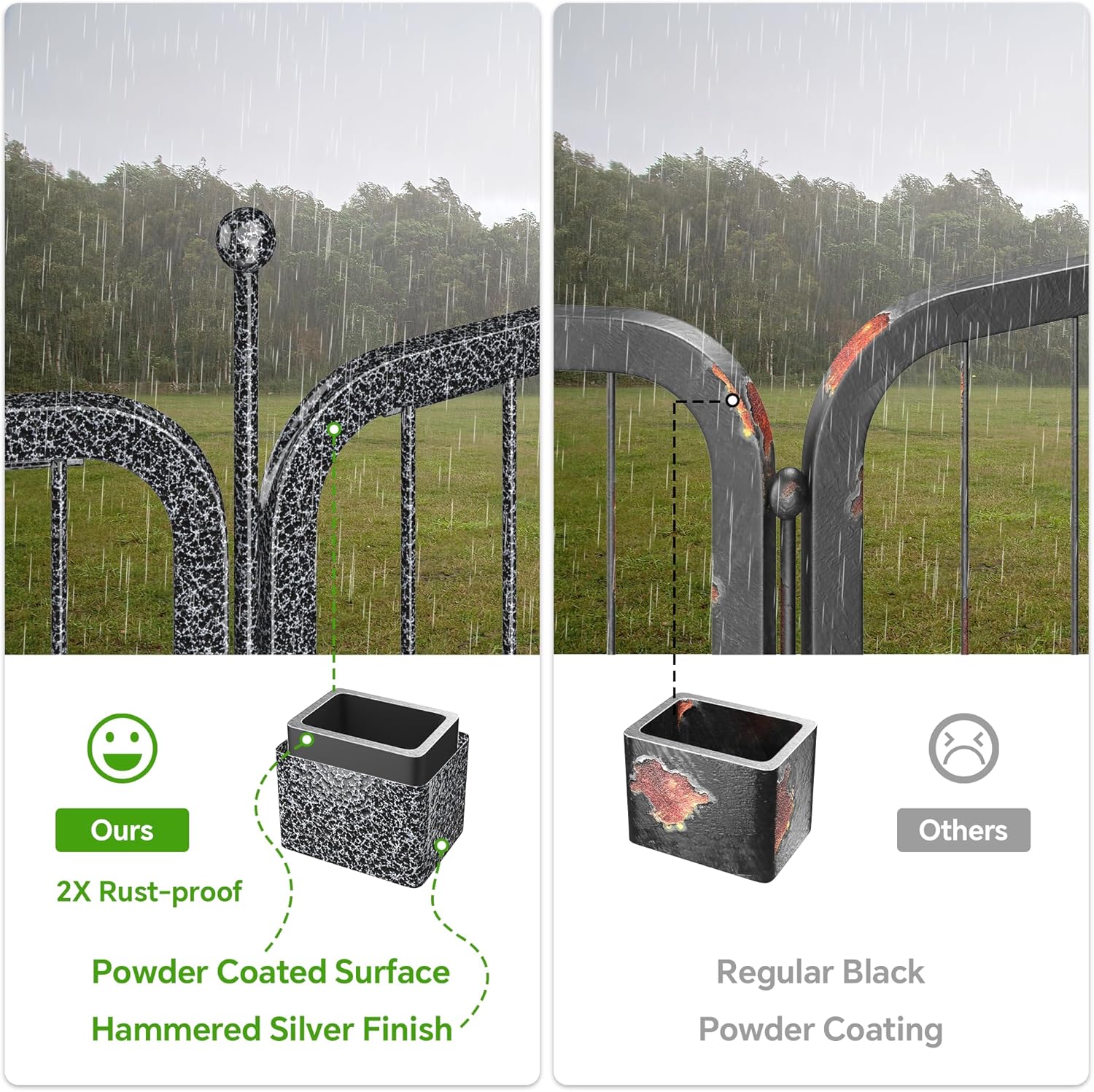 【Sturdy and Long-lasting】: This durable dog fence comes with a silver hammer-tone coating, makes it more resistant to rust and scratch than other ordinary black powder-coating dog playpens. Furthermore, thickened metal adds 2X stability of the dog pen for long-term use outdoor/indoor.