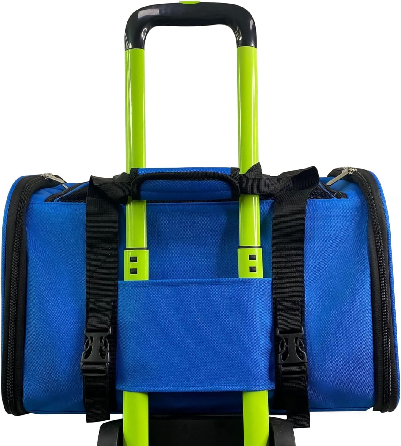 Mr. Peanut’s Airline Approved Soft Sided Pet Carrier, 17.5X11X11″ Travel Tote with Soft Padded Bedding With Strong 1/4″ Wood Base, Seatbelt & Luggage Attachment, Perfect for Cats and Small Dogs