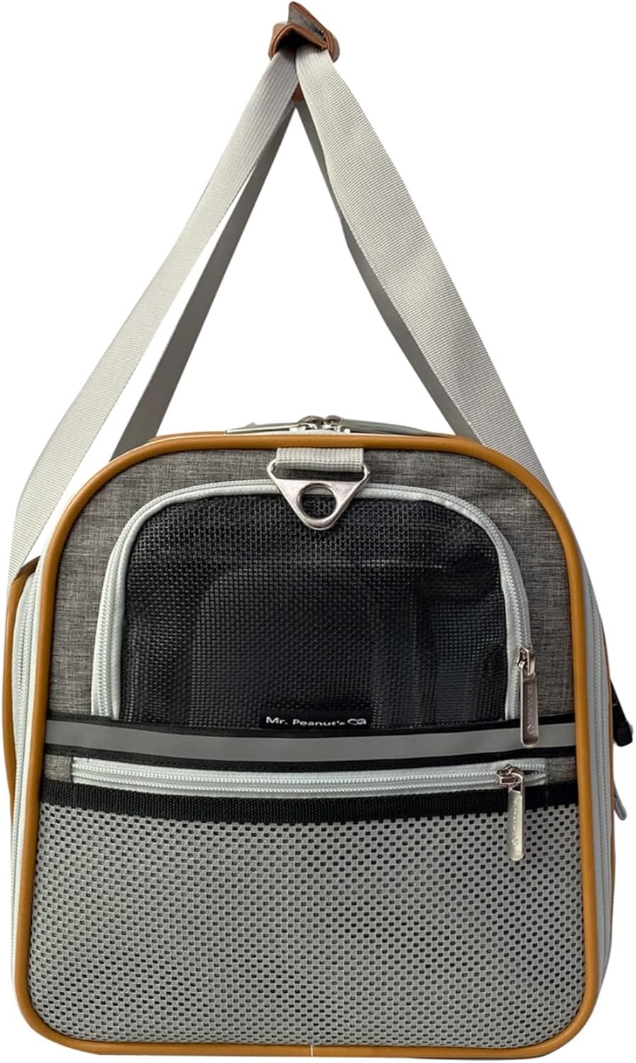 Mr. Peanut’s Expandable Airline Approved Soft Sided Pet Carrier, Luxury Travel Tote with Premium Auto Self Locking Zippers, Plush Faux Fleece Bedding with Sturdy Plywood Base, 18LX10.5WX11 H