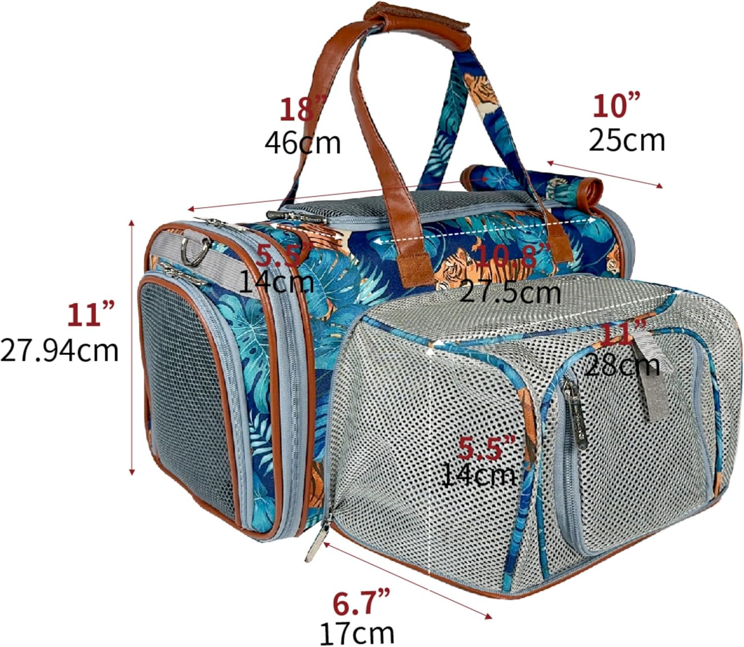 Premium Brand Auto Self Locking Zippers for Safety and Eliminating the need for fragile and unreliable clasps as the tote cannot be pushed open from insideRecommended for Pets Up to 15lbsAirline Capable 18″ Length x 11″ Width x 11″ Height, best fit for pets approximately 16″ in length while laying downPlush Faux Fleece Pad with Plywood Base Insert for Additional SupportWeighs only 2.9lbsOpen Air, Teslin Resin Mesh Windows on Top and Three SidesFabric Roll-Away Privacy CoverLuggage Strap