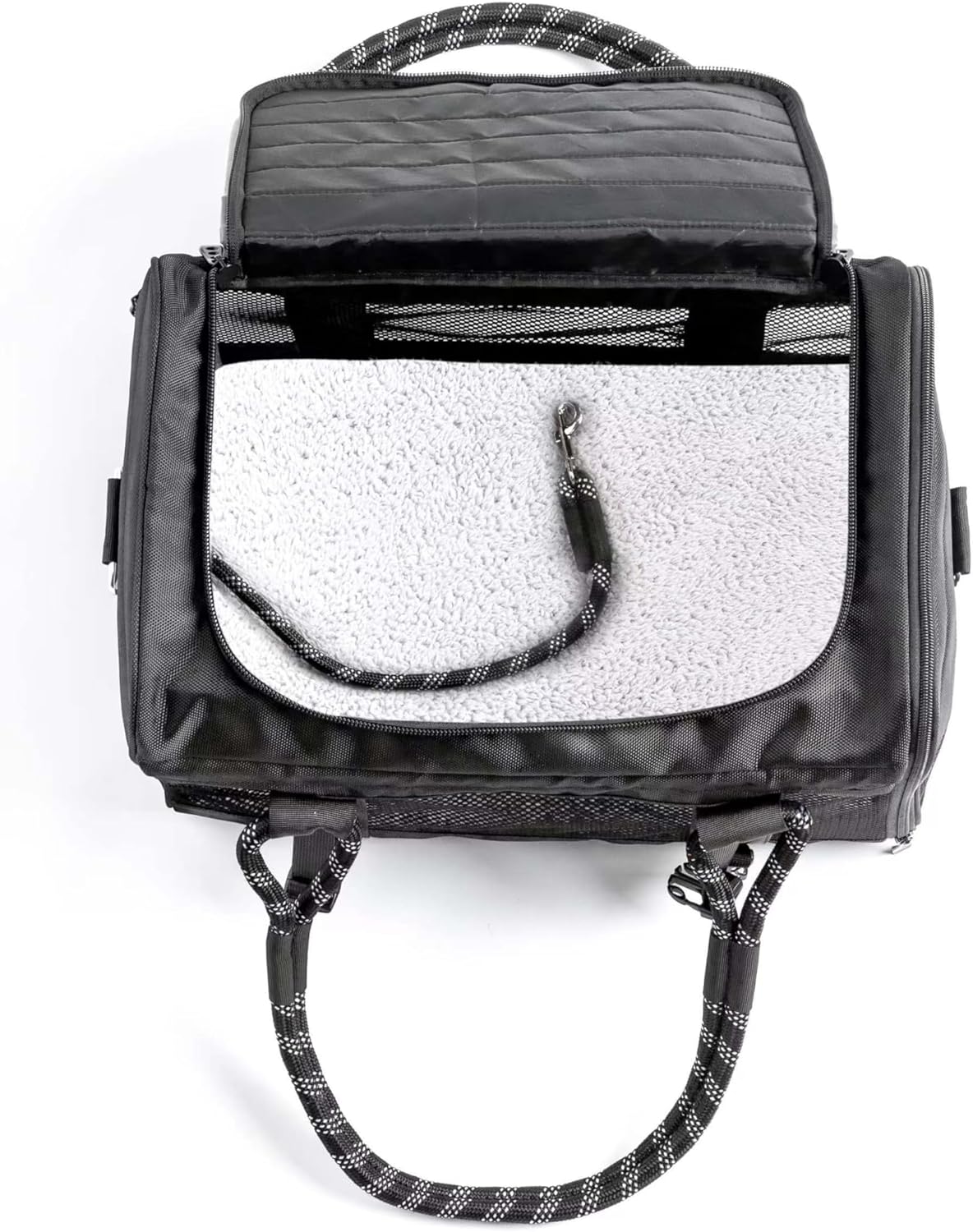 Built-in Leash: Interior leash tether attachment clips to your pet’s collar to keep them inside their pet carrier.