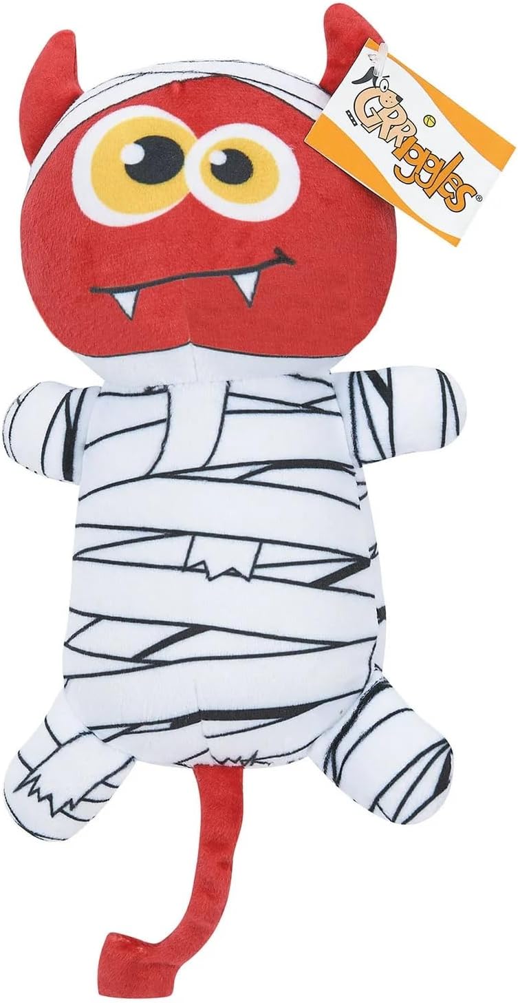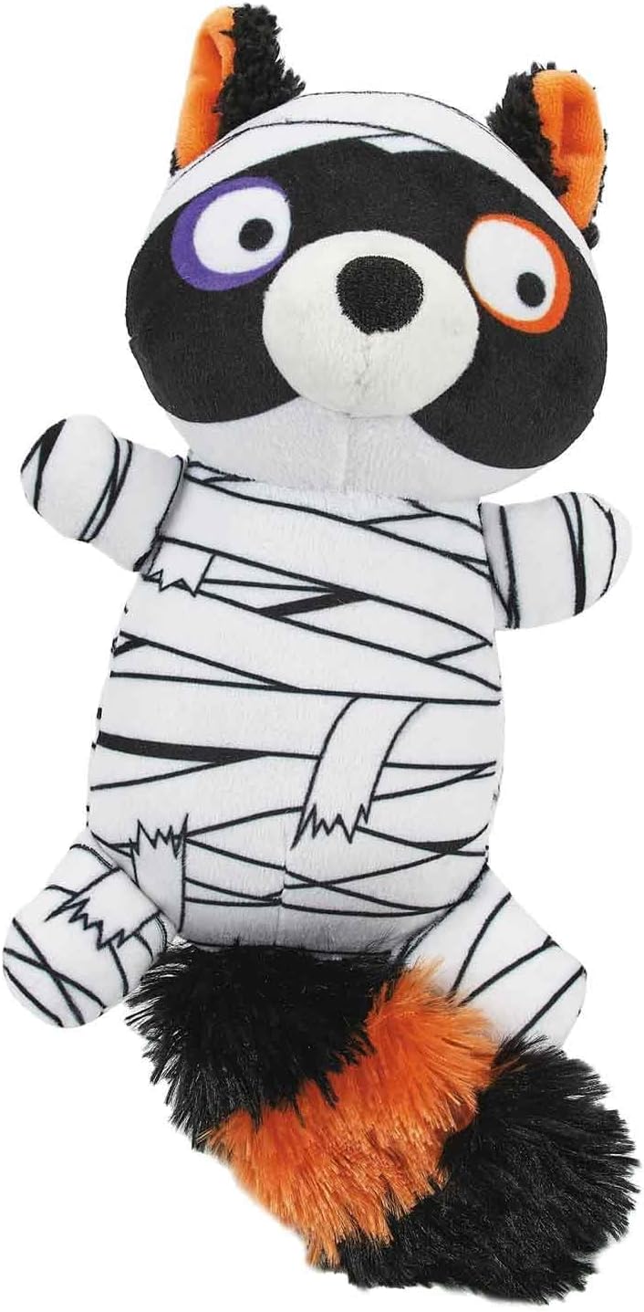 Halloween Mummy Friends Dog Toys Mummy Friends are full of frightfully good fun. Stuffed plush Halloween characters each have unique features to create interest. Squeaker excites and entices pets to play. Adorable Halloween characters will delight Poochie Parents and Poochies alike! Frightfully fun halloween characters Each character has unique features Stuffed with soft polyfil Squeaker excites and entices pets to play Perfect for halloween! Size: 9.5 – 12″ Materials: 100% Polyester fabric, Plush, PVC squeaker Available in Vampire, Devil, Raccoon or a Full Set of All 3 Toys.
