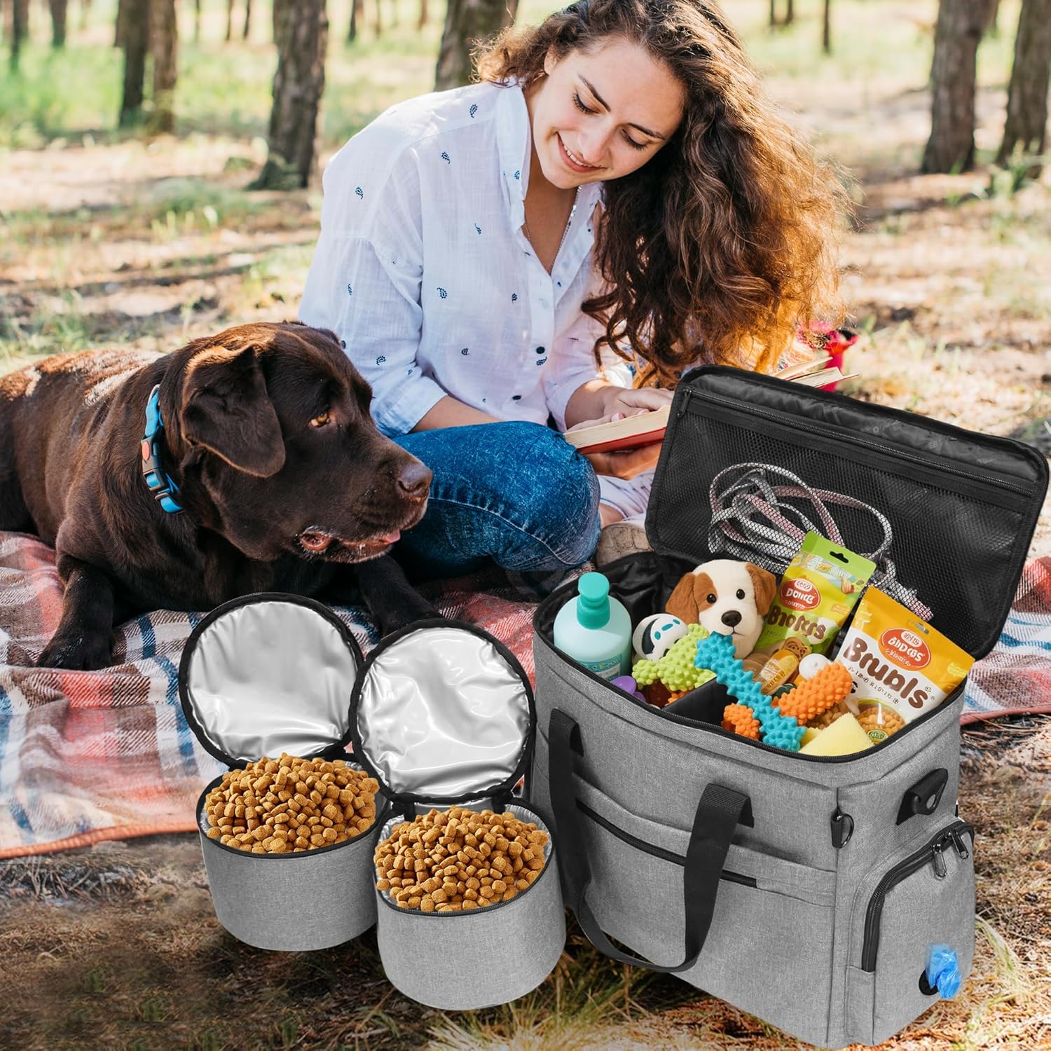 ENJOY THE TRIP WITH PETS: A versatile pet travel bag can fits 3+ days of food, toys, and accessories. Quick-access pockets for leashes, waste bags, and treats.Perfect for road trips, hiking, or daily walks,everything stays for pets allsecure and within reach.