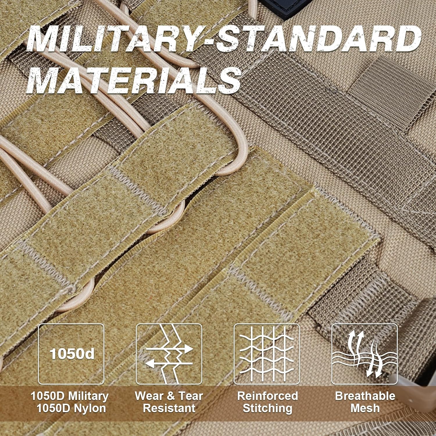 【Military-standard Materials】The heavy-duty dog harness is made of durable nylon and adopts an upper and lower two-layer structure. The outer camouflage pattern is 1000D nylon with sturdy stitching for extra durability, and the inner layer is a mesh material with excellent breathable, comfortable fit and no harm to the dog.