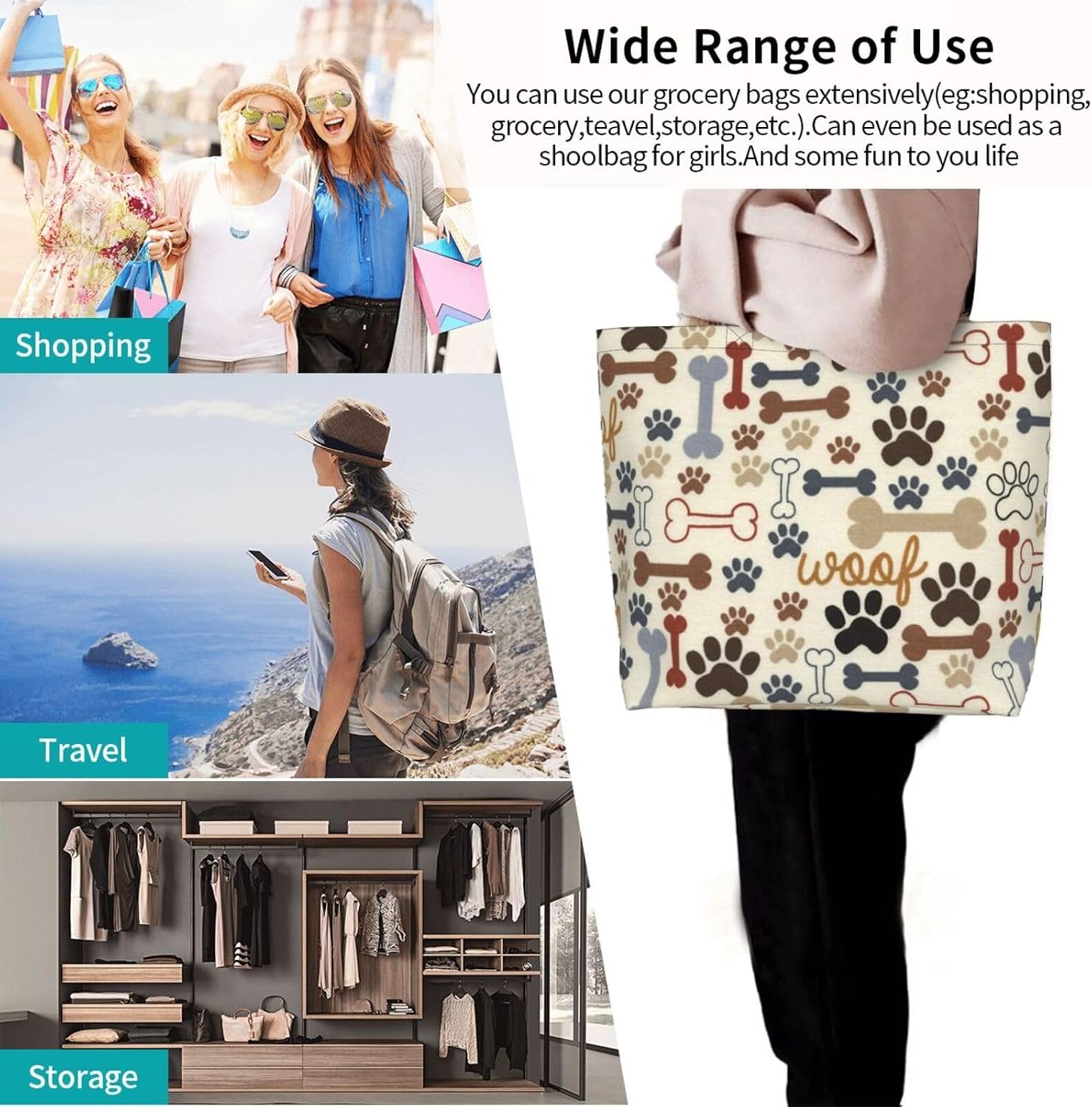You can use it as a shopping bag, beach bag, weekend bag, nursing bag, summer bag, weekender travel bag, daycare bag, vacation bag, mom tote bag, casual bag, office bag, duffle bag, etc. The classic design never goes out of style.
