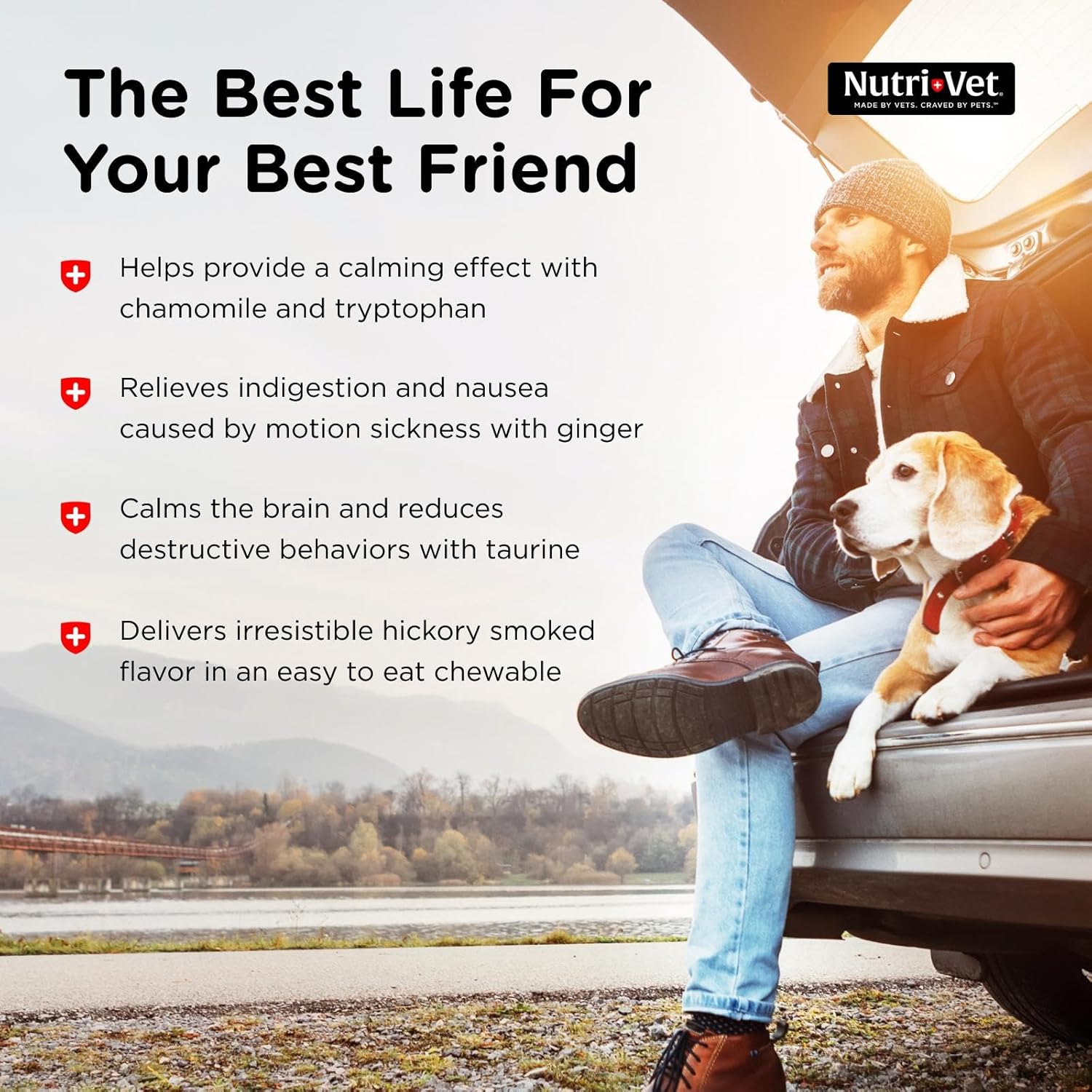 FOR NAUSEA AND INDIGESTION – Calming chews feature ginger for relieving indigestion and nausea associated with motion sickness; Irresistible hickory smoked flavor in an easy soft chew dog treat