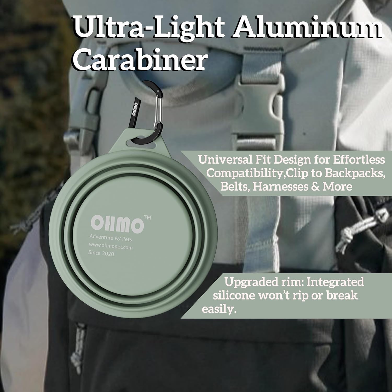 OHMO Collapsible Dog Bowl(2 Pack, Camo&Light Green 12oz/400ml) Premium Silicone Pet Water Bowls for Cats & Dogs, Portable Dog Travel Bowls Foldable for Outdoor Camping Hiking