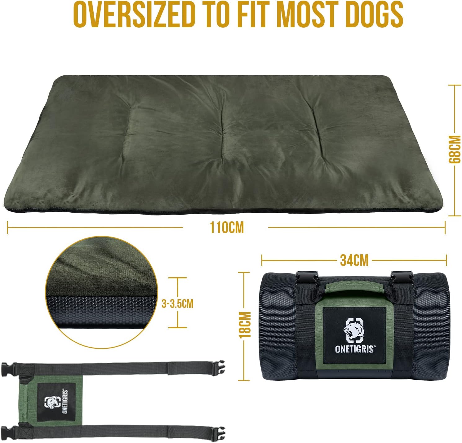 ONETIGRIS Travel Dog Bed – Portable, Washable, Waterproof Anti-Slip Dog Camping Bed, 3.6ft by 2.2ft Outdoor Indoor Bed Mat Cushioned Plush Warm Puppy Mattresses