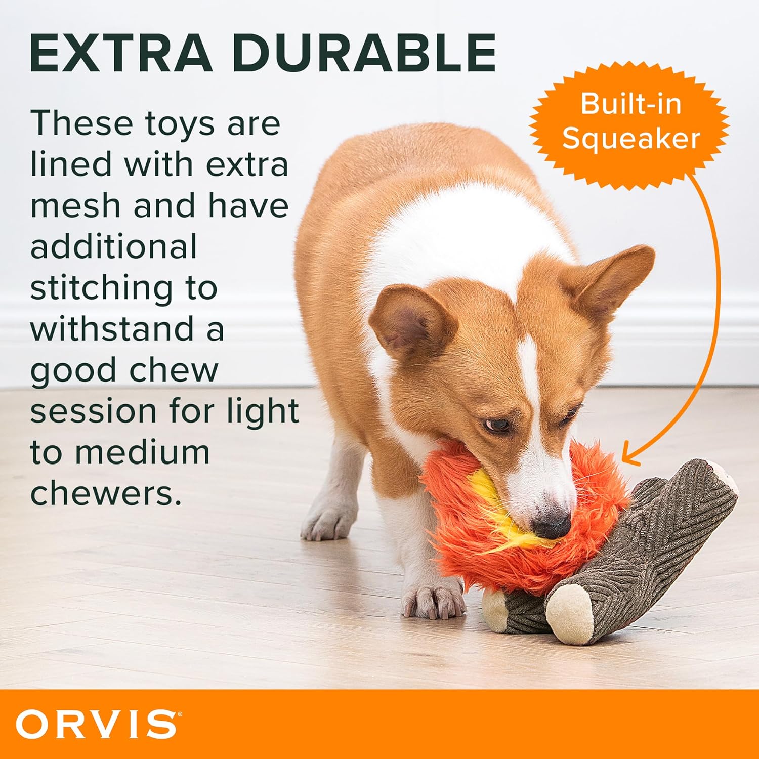 Orvis Campfire Tails 2-in-1 Plush Toy Set | 2 Piece Durable Crinkle and Squeaker Chew Toys for Dogs – Interactive, Tough With Extra Mesh Lining and Double Stitching