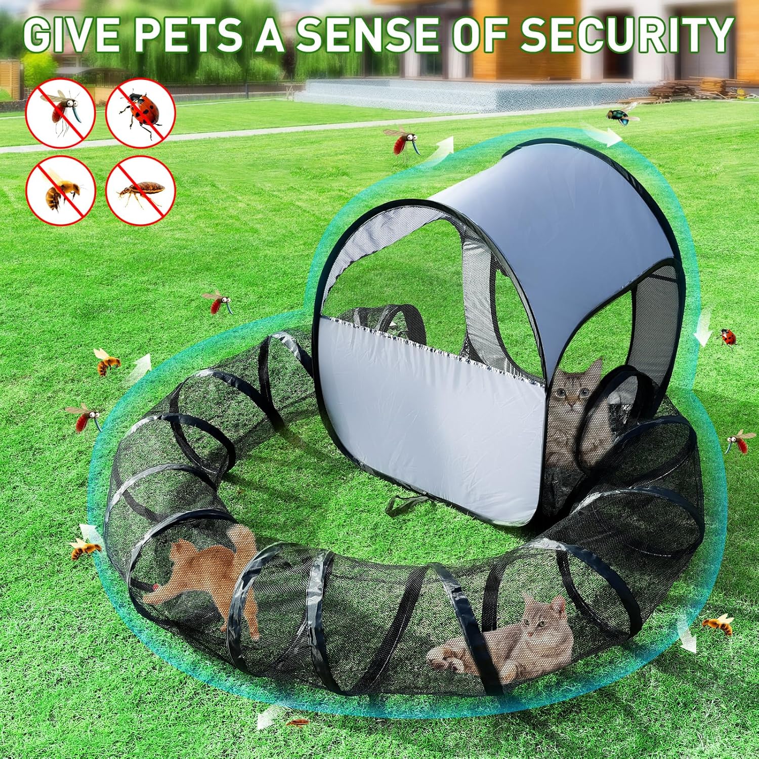 Outdoor Cat Playpen with Tunnel – Escape-Proof, Breathable & High-Visibility Mesh, Foldable Pet Playpen for Backyard, Camping, Travel