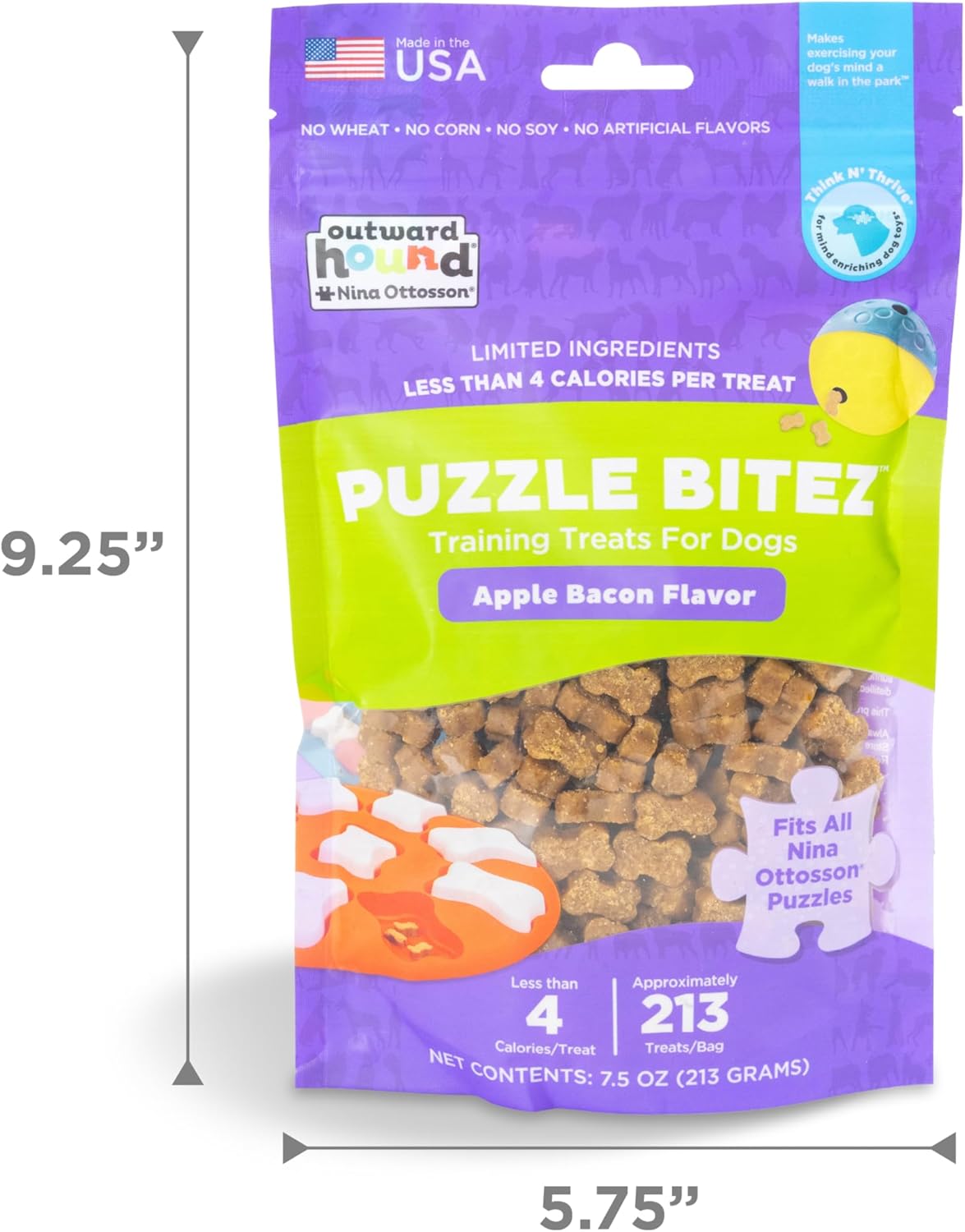 Outward Hound by Nina Ottosson Puzzle Bitez USA Made Dog Treats, Apple Bacon Flavor, Bite-Sized Training Reward and Interactive Puzzle Toy Treats, 7.5oz