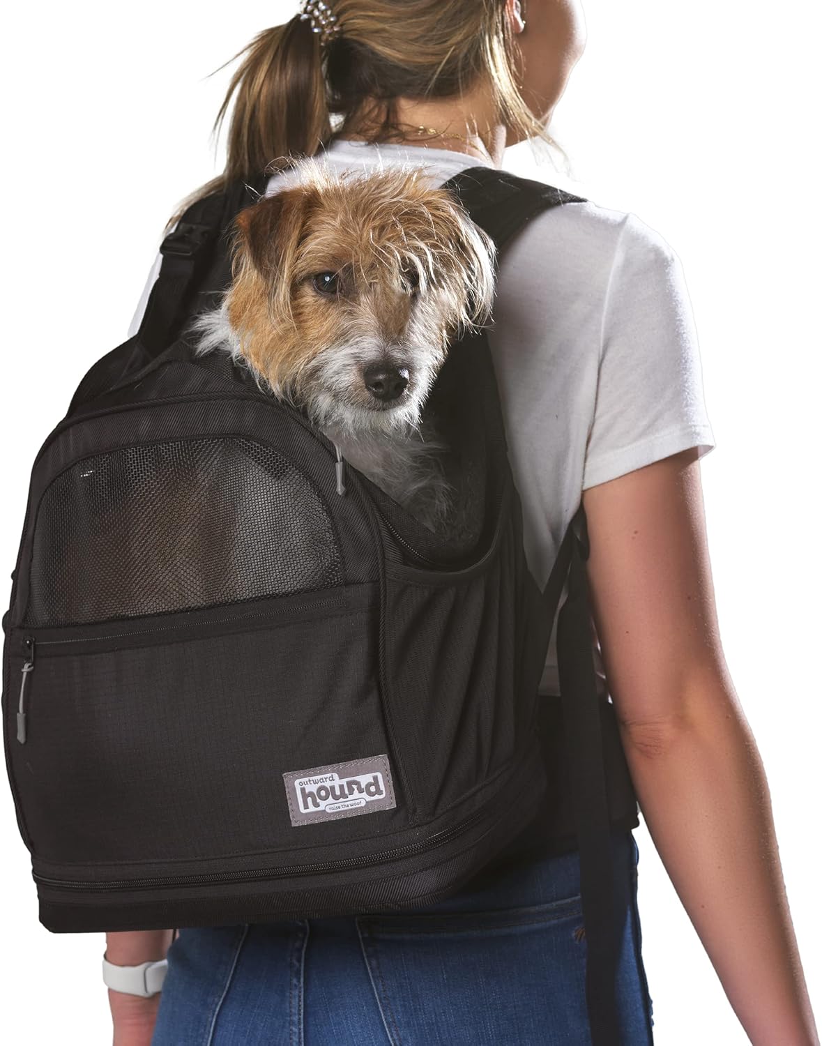 Outward Hound PupPak 2 in 1 Dog Carrier Backpack, Black – Hands-Free Front or Back Wear, Fits Pets up to 20 lbs, Expandable Bottom, 360° Mesh, Storage Pockets – Ideal for Travel, Hiking, Camping