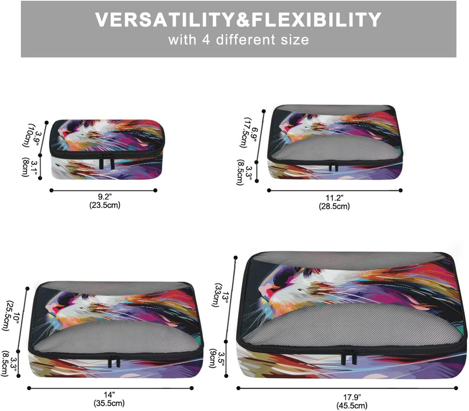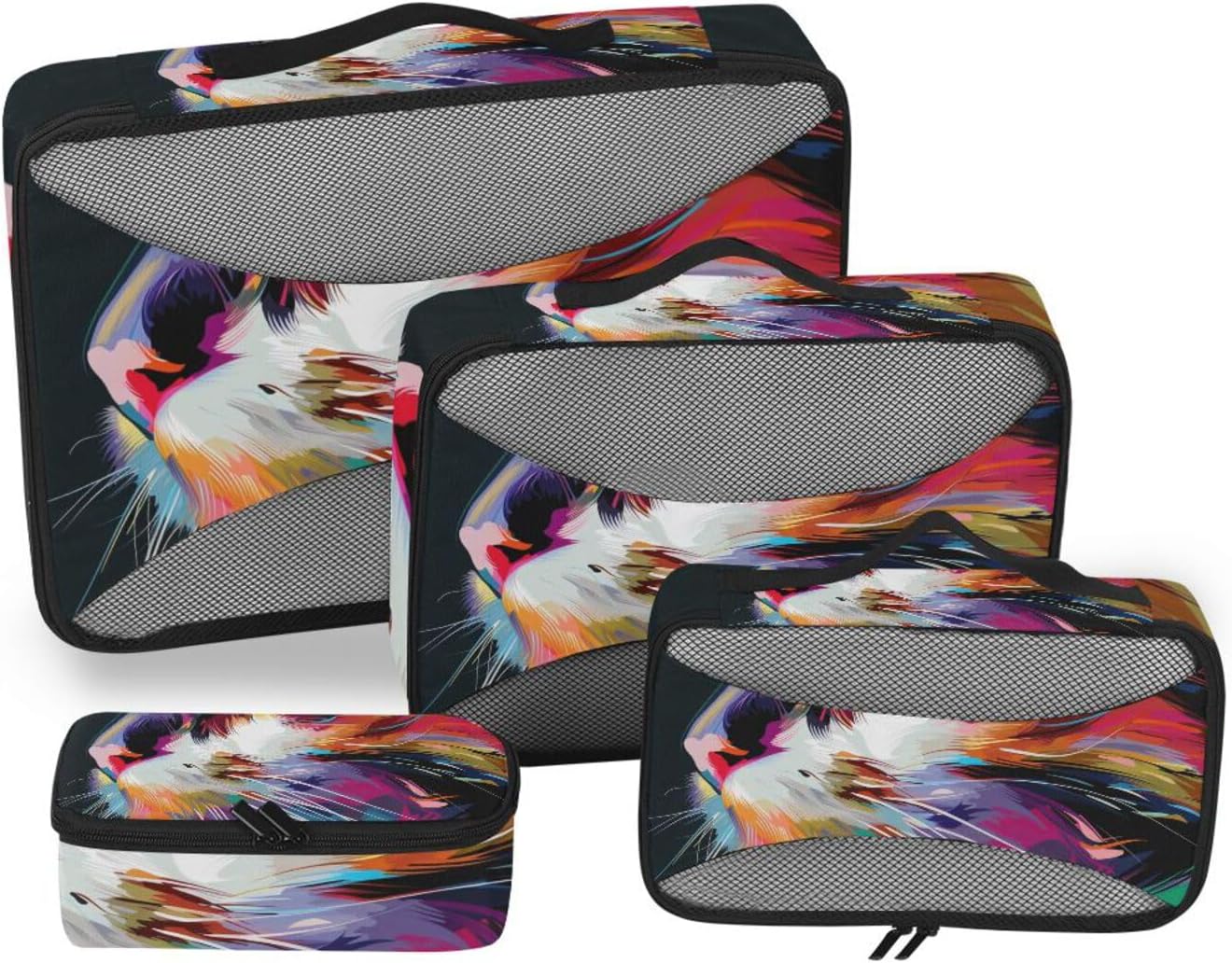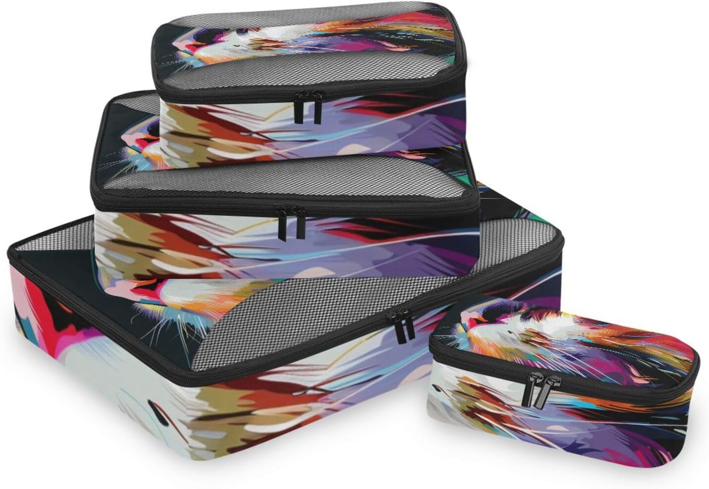 Packing Cubes for Travel 4 Set Cat Rainbow Pet Luggage Set Suitcase Organizer Bags Mesh Accessories Storage Pouch Toiletry Packing Cubes