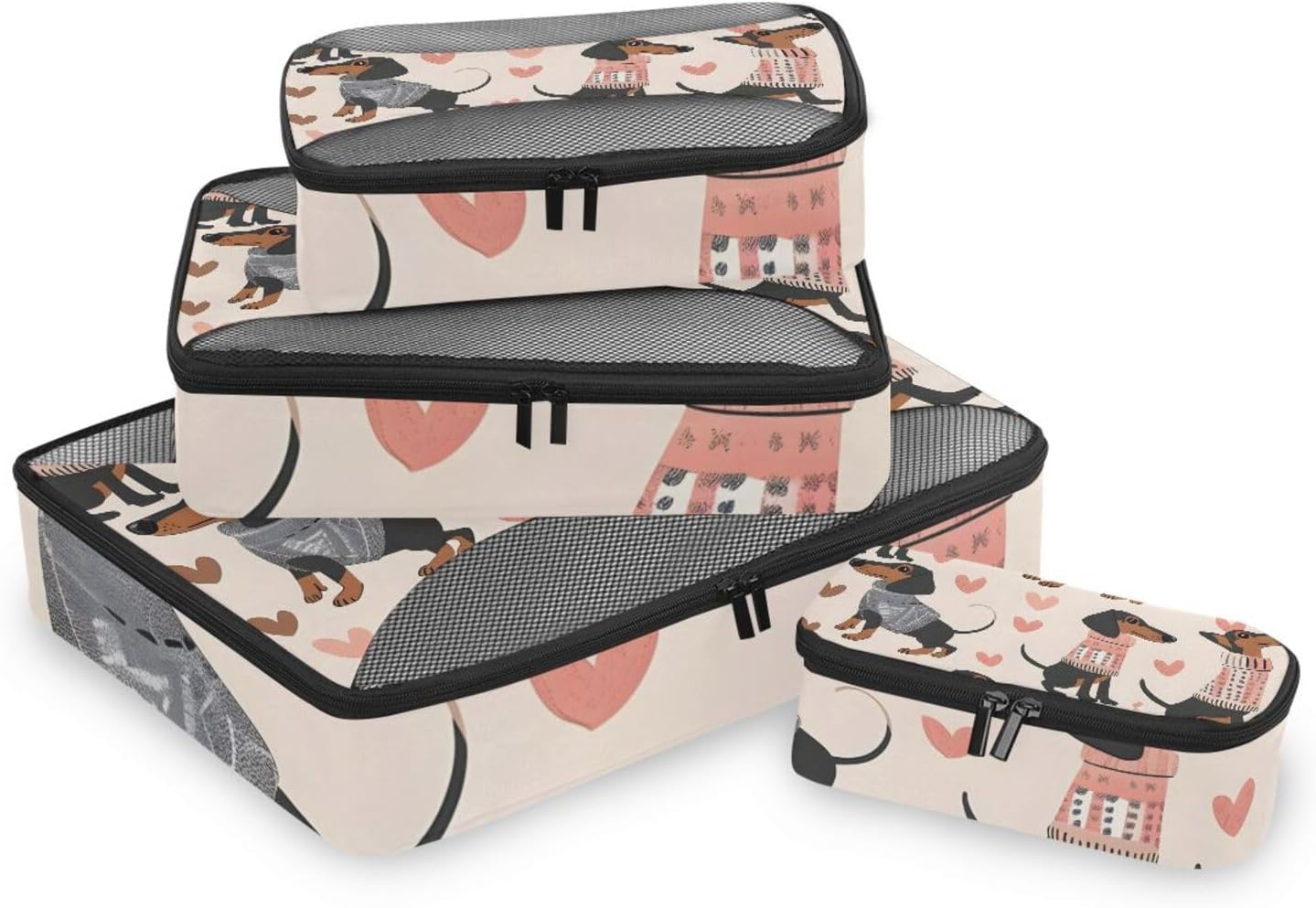 Packing Cubes for Travel 4 Set Cute Dachshunds Dog Pet Luggage Set Suitcase Organizer Bags Mesh Accessories Storage Pouch Toiletry Packing Cubes