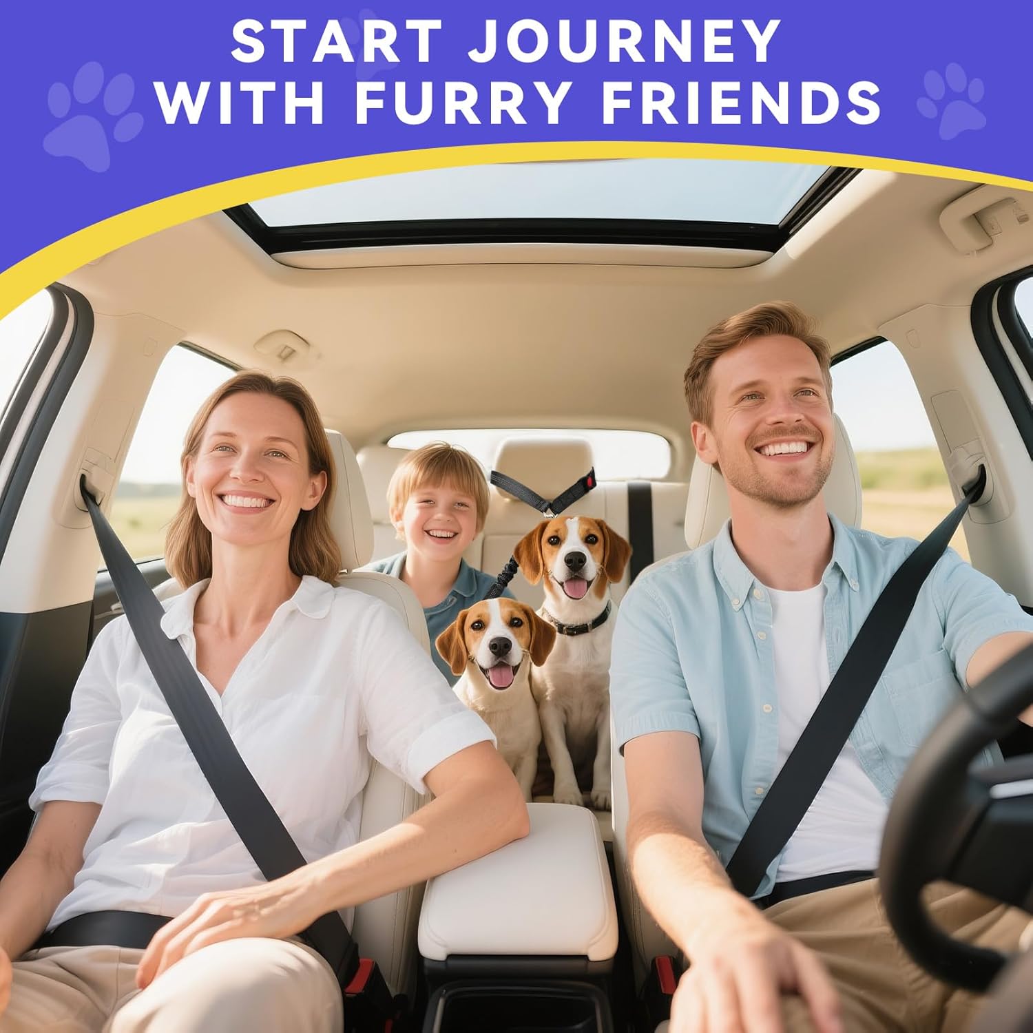 Pawaboo Dog Car Seat Belt with Dual Leash, Joyful Travel for Pets