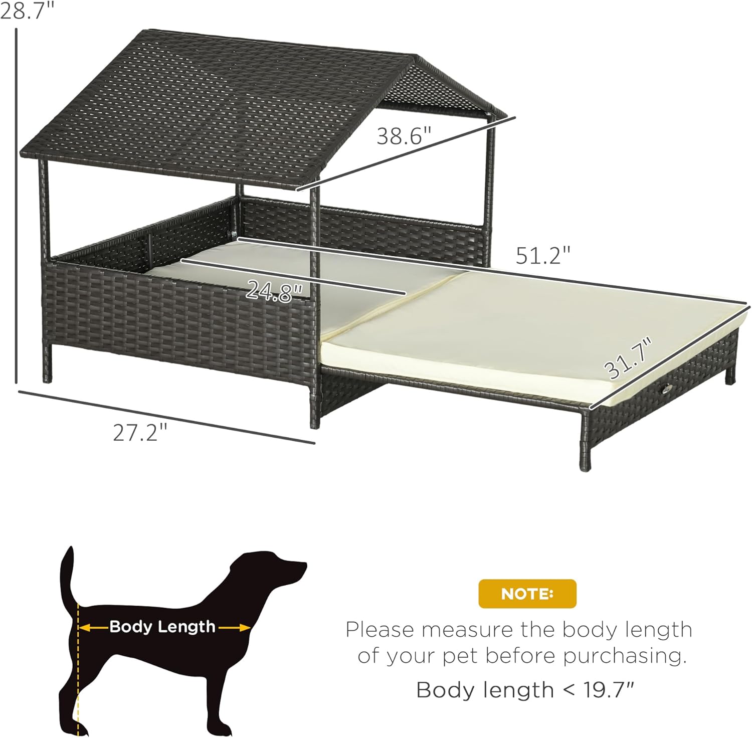 PawHut Outdoor Wicker Dog House with Canopy, Extendable Rattan Dog Bed with Soft Cushion Removable Cover for Small and Medium Dogs, Cream