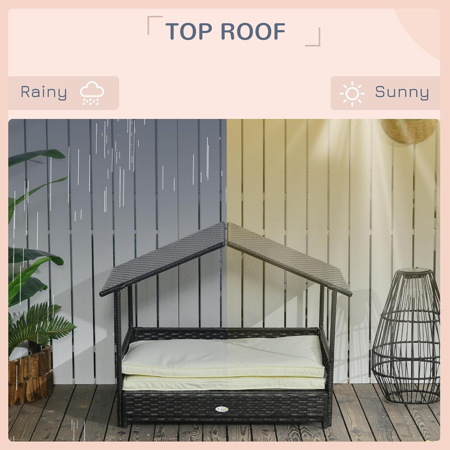 Durable PE Rattan: Crafted from sturdy PE rattan, this outdoor dog bed with canopy is built to withstand the elements, providing a reliable shelter for your pet.