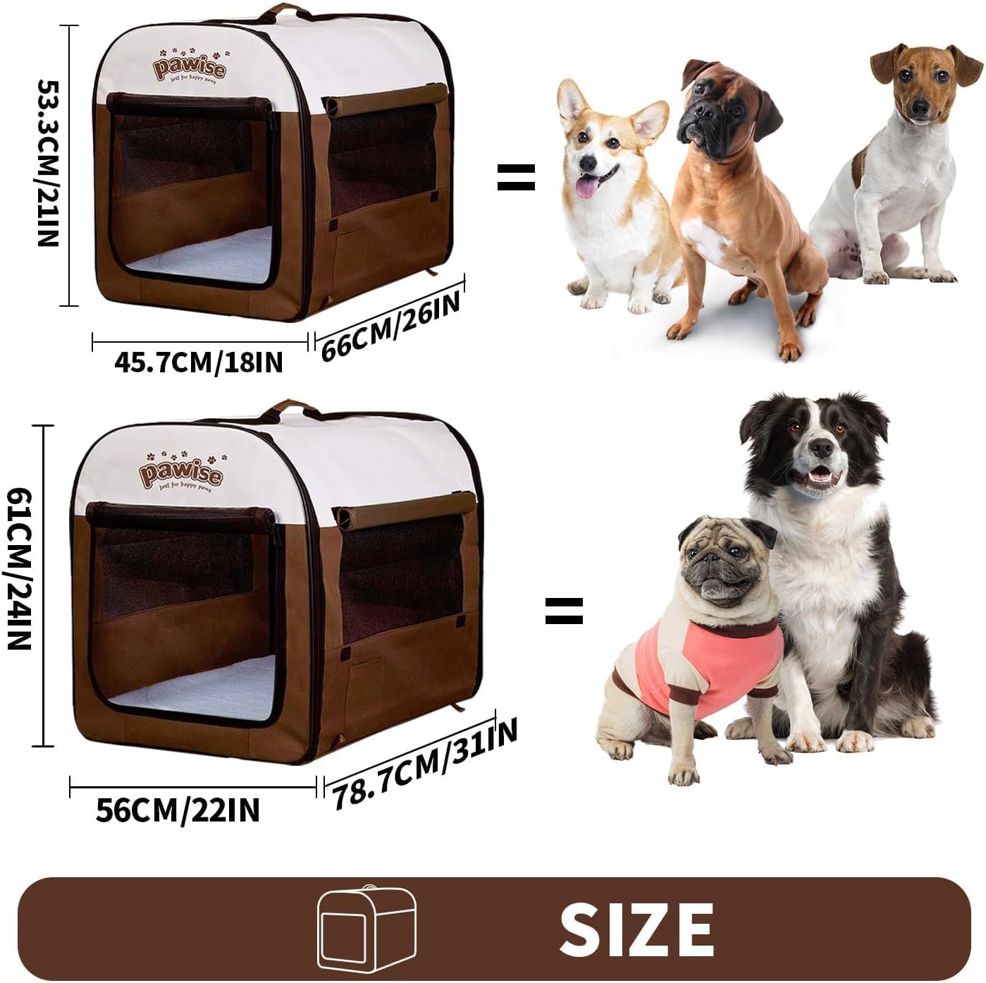 PAWISE Collapsible Soft Dog Crate Pet Kennel Houses, Portable Dog Crates for Medium Dogs, Lightweight Travel Crate Kennel Indoor & Outdoor, 26″x18″x21″,Medium