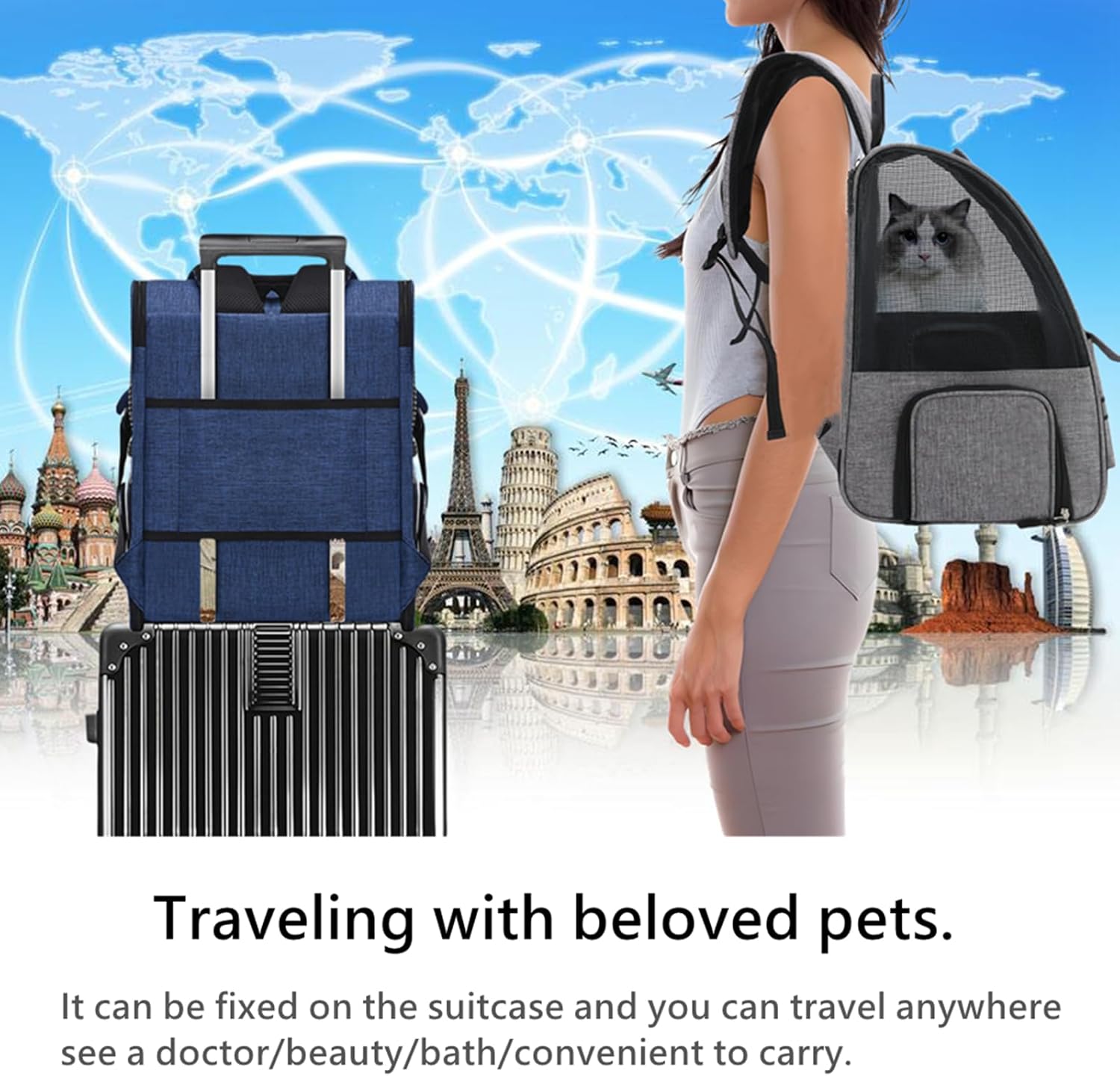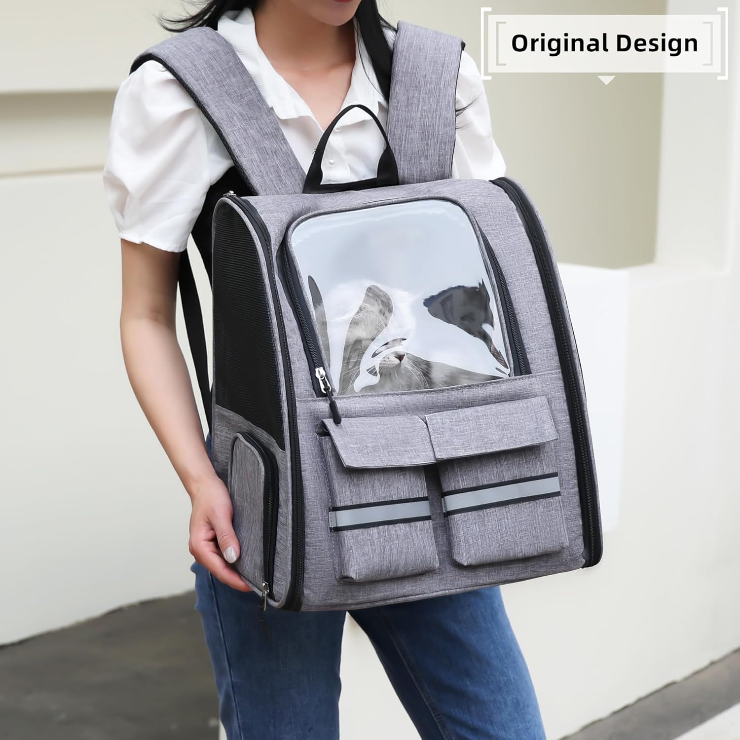 HIGH QUALITY MATERIAL: The cat travel backpack is made of breathable and durable oxford fabric, which is not only easy to clean and maintain, but also prevents your cat from scratching and makes the backpack cat carrier more durable