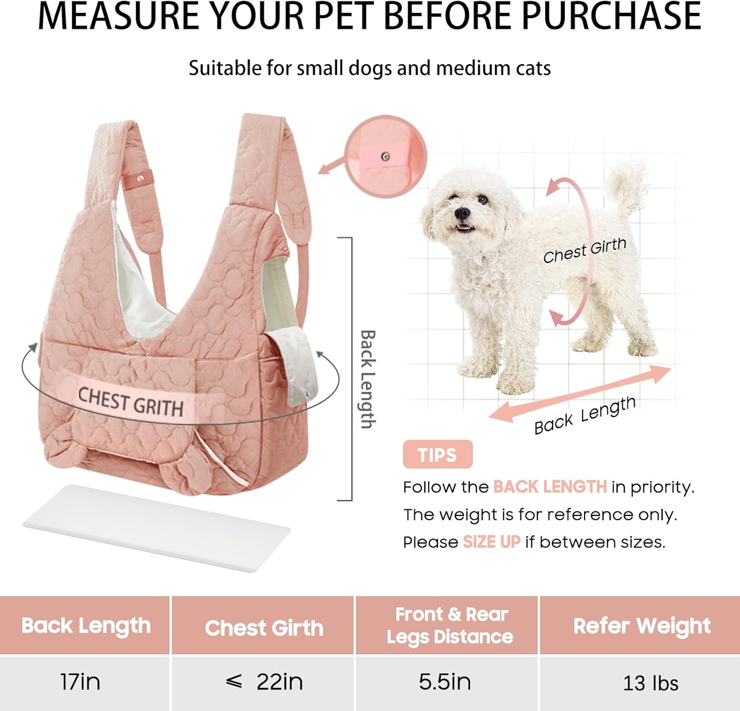 【Pet Carrier Backpack Dimensions】: Measuring 17.5″ x 17.5″ x 6.5″, this Pet Carrier Backpack is ideal for pets weighing up to 13 pounds. Adjustable shoulder straps (29–35 inches) ensure a secure and comfortable fit for most users. Be sure to measure your pet and refer to the size chart (Fig. 2) to select the appropriate size.