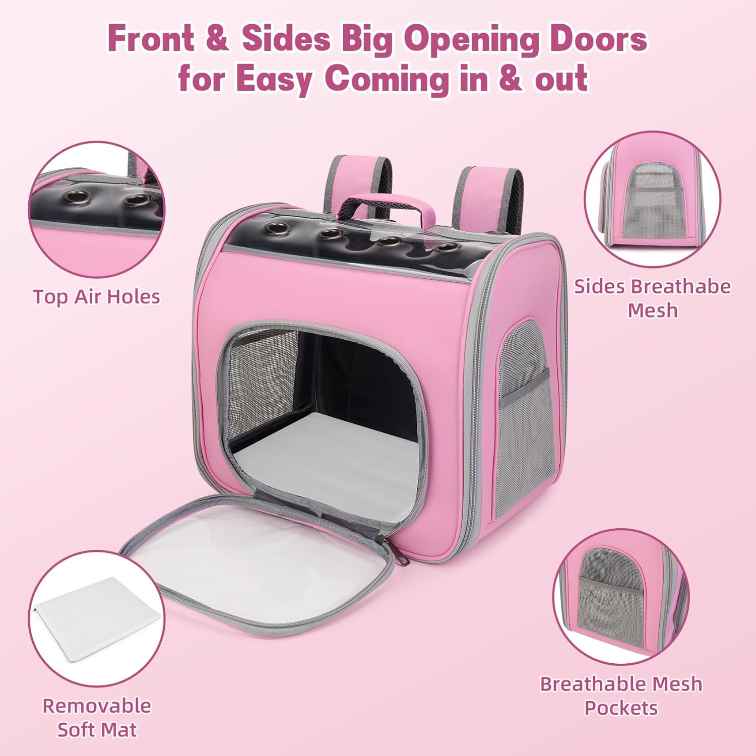 Pet Carrier Backpack, Cat Backpack Carrier with Breathable Holes, Portable Pet Travel Carrier for Medium/Small Cats and Dogs, Airline Approved, Ideal for Outdoor Picnic,Hiking (Pink)