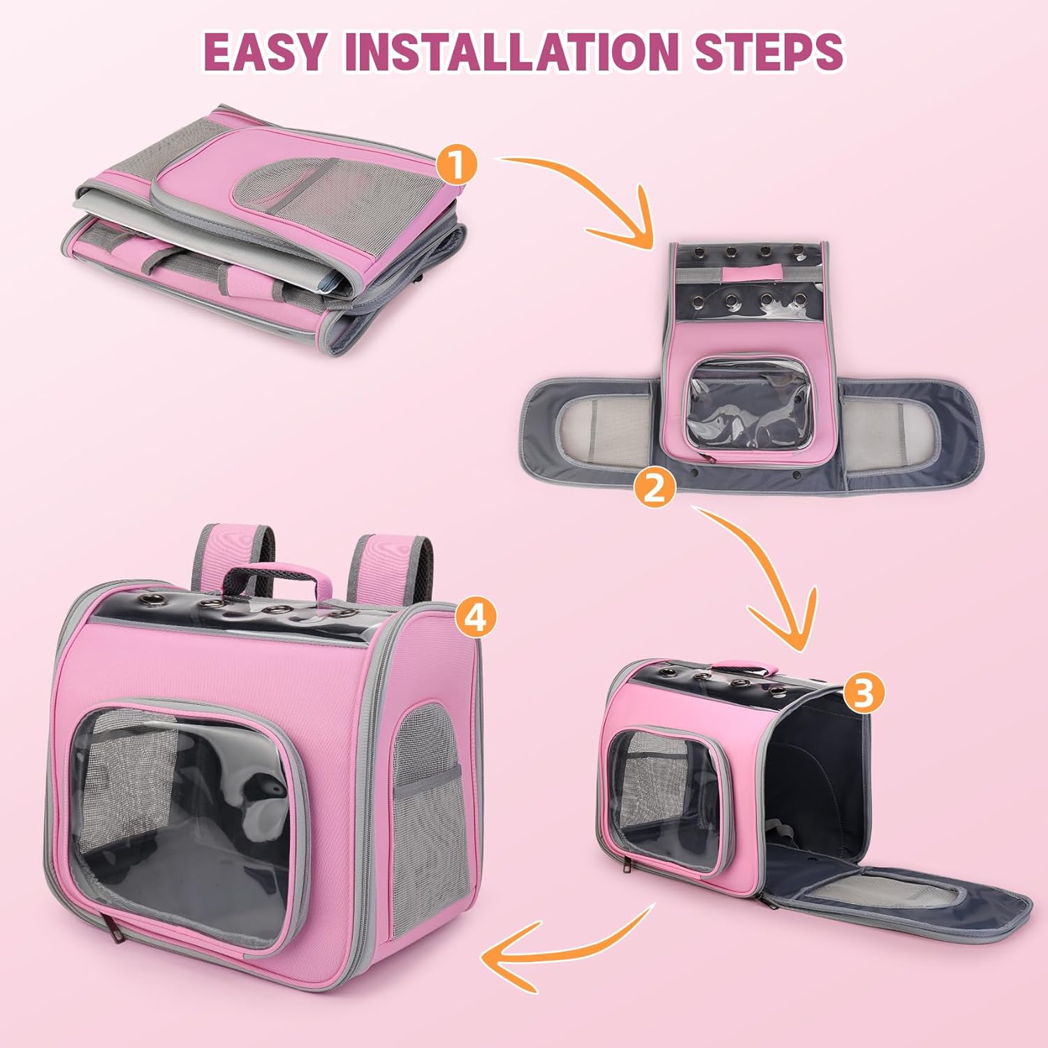 Durable Structure – The pet backpack is made of Durable Top Handle, easily & comfortably to carry by hands; Durable Bottom Board, better to support your cats during the way outsides walking, hiking or traveling. Safety Lock, better protect pets from going away from the backpack.