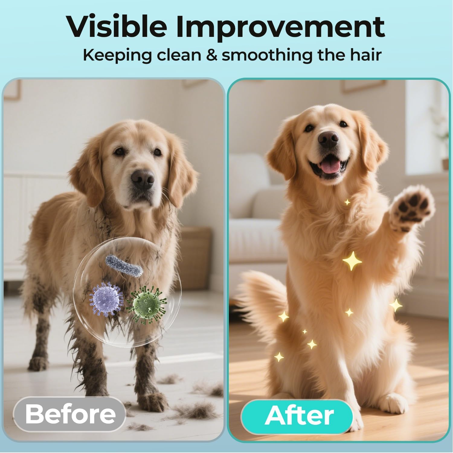 🌿 Safe & Nourishing Ingredients: Our pet glove wipes for dogs and cats are crafted with natural, pet-safe ingredients like EDI purified water, organic coconut oil, tea extract, vitamin E, and witch hazel extract. These deodorizing wipes gently clean, nourish, and smooth your pet’s fur while promoting healthy skin. Safe even if licked, they’re perfect for pets with sensitive skin.