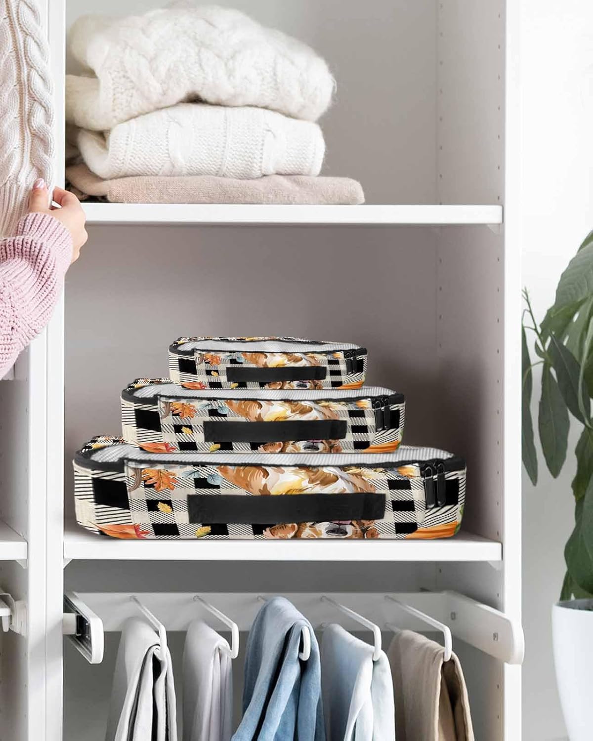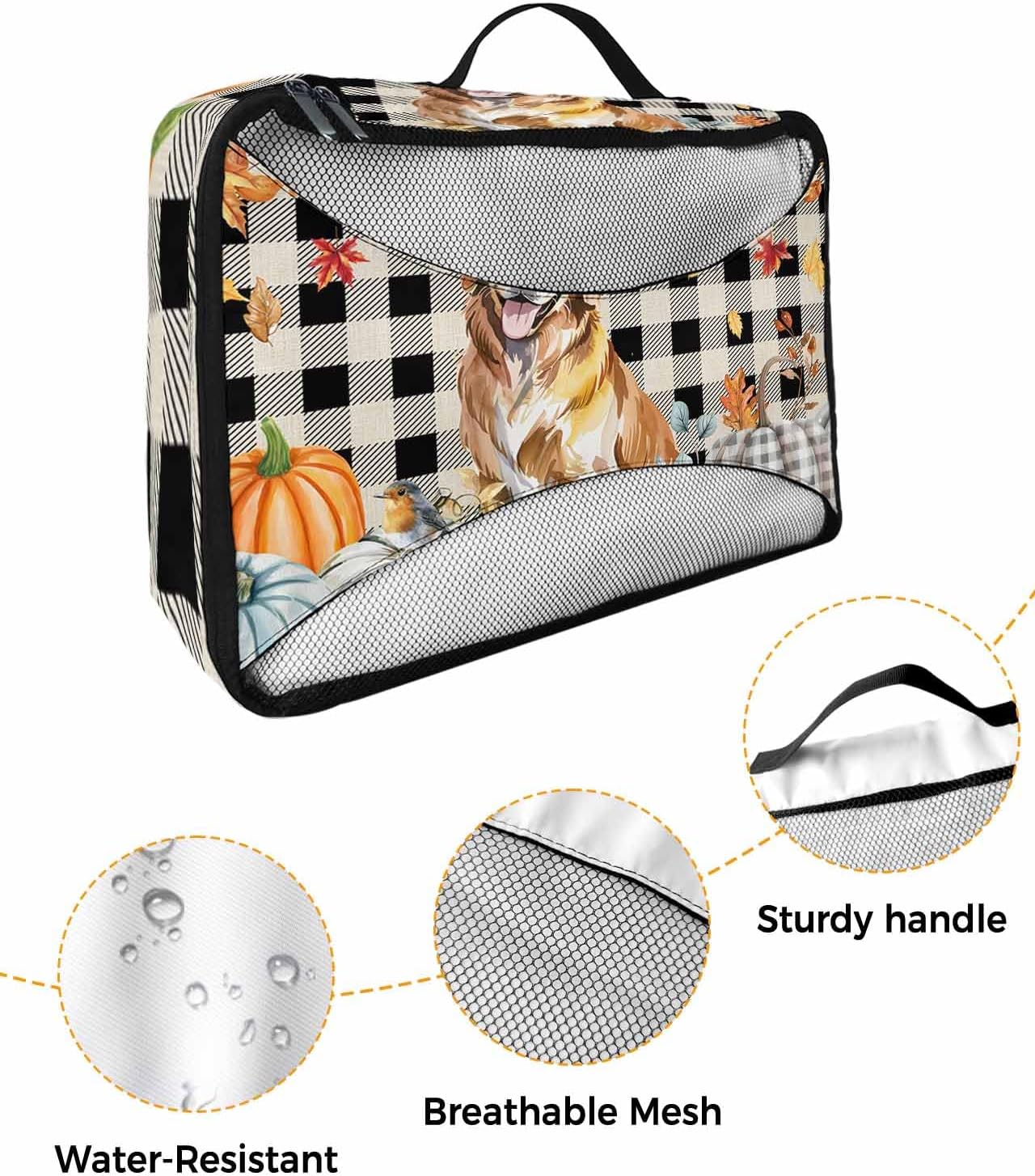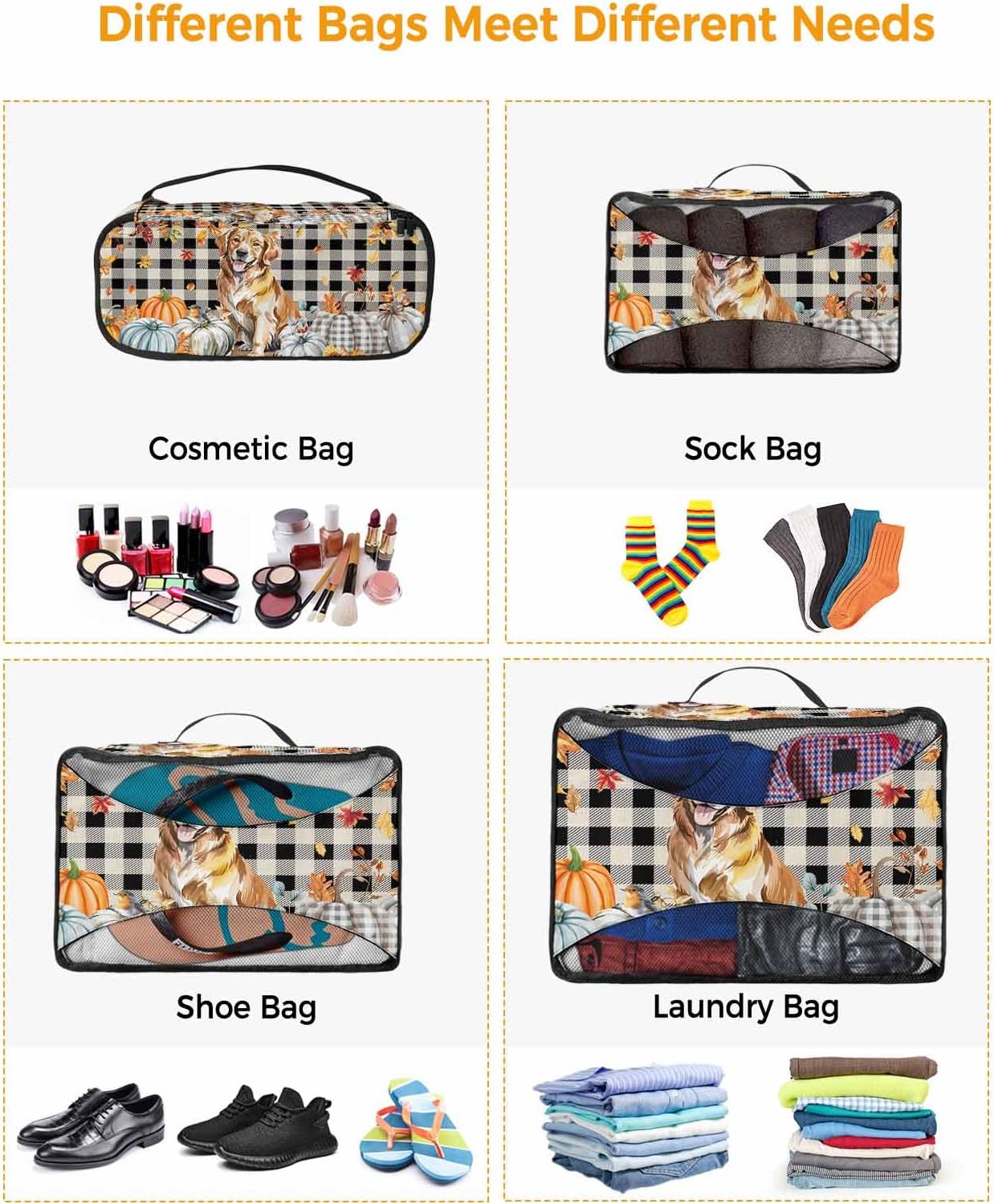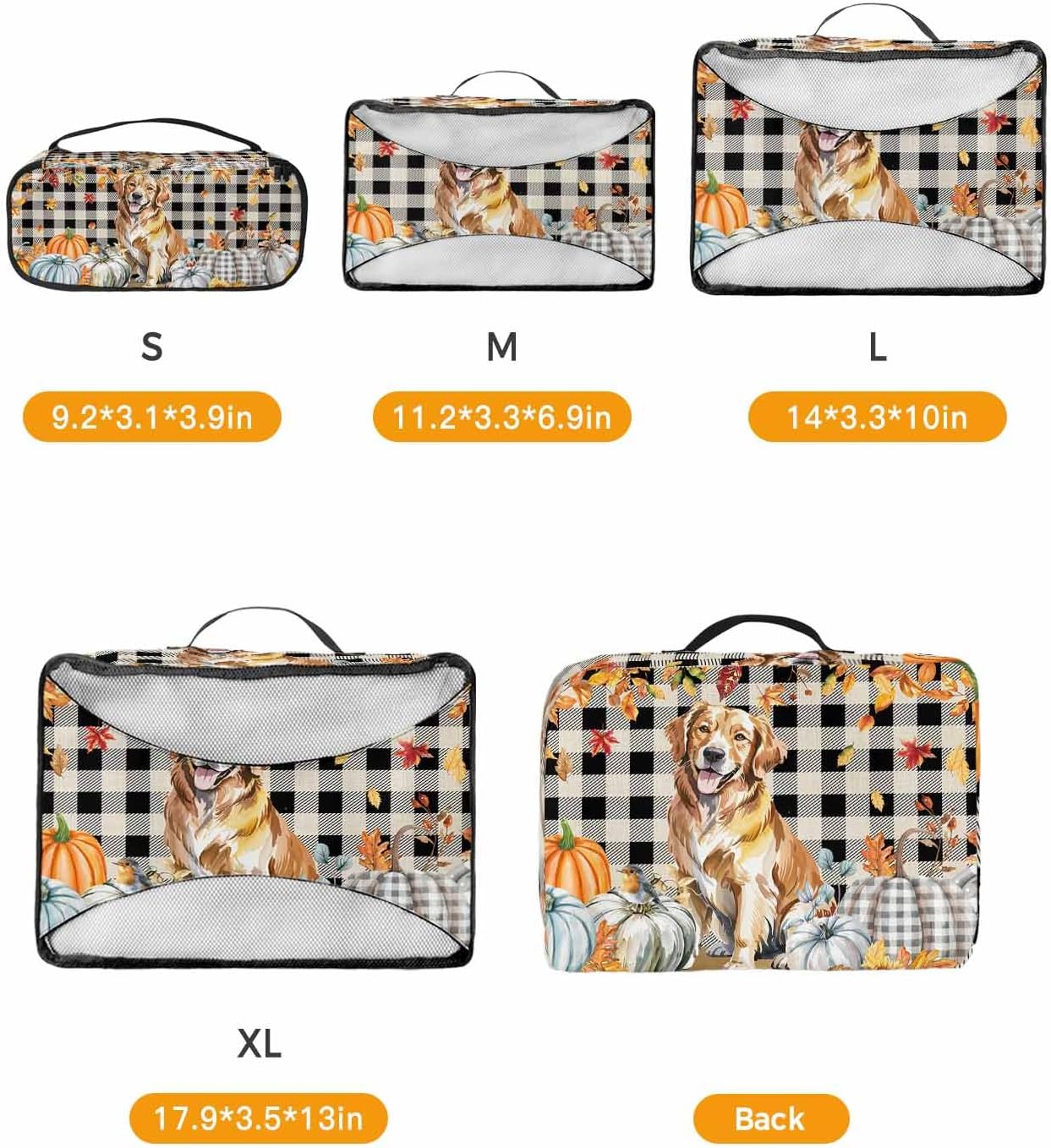 Pet Golden Retriever Dog Pumpkins 4 Set Packing Cubes, Autumn Leaves Packing Cubes for Carry on Suitcase Travel Essential Bag for Clothes Shoes Cosmetics Toiletry