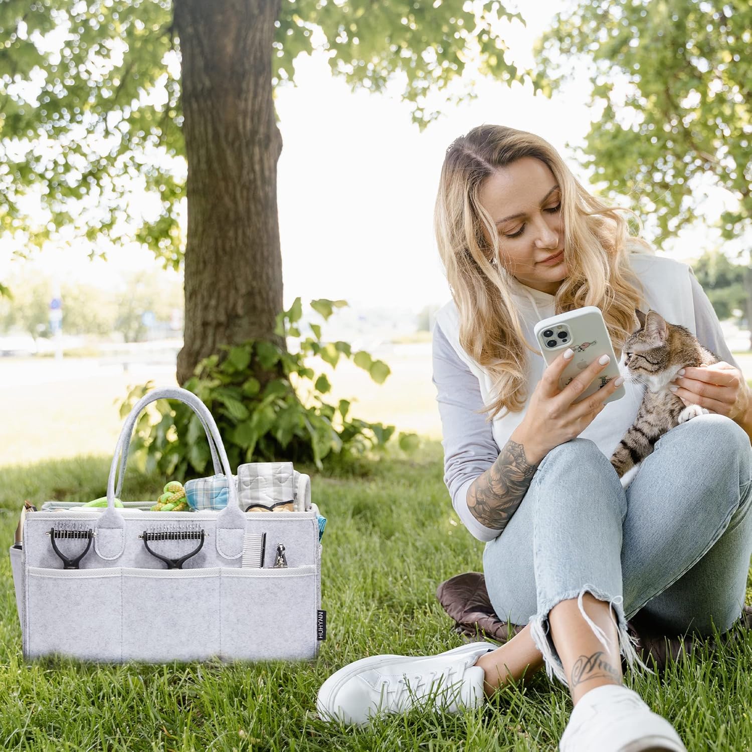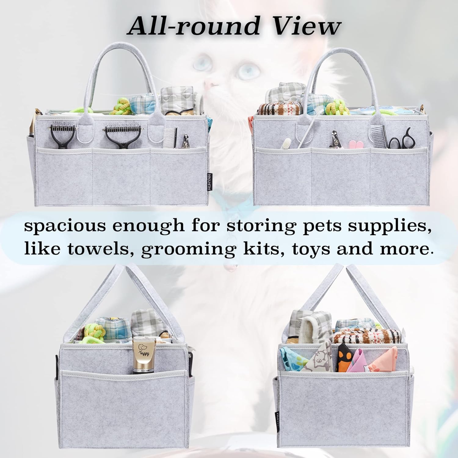 【PREMIUM QUALITY】 The portable pet grooming tote is made of high quality felt material with enhanced stitching, which ensure long term use. Besides, this dog grooming storage bag has its sturdy handles, convenient to carry it for outdoor.