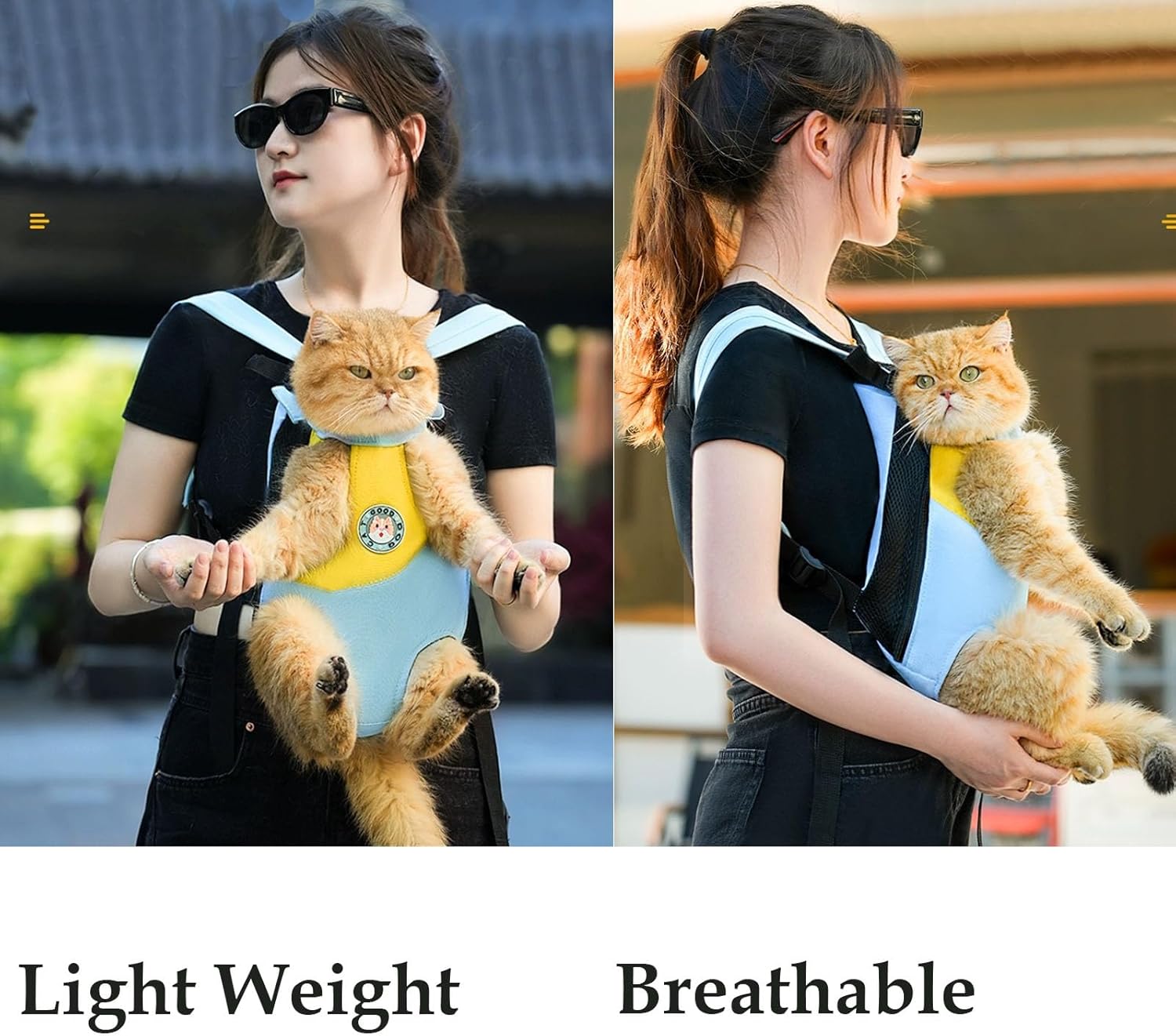 【Safe & Comfortable】Our straps are designed with zippers + buckles, which are safer and more comfortable than zippers + Velcro. They prevent pets from slipping and being scratched by sharp Velcro. The neck of the pet is elastic and can be adjusted according to the thickness of the neck.