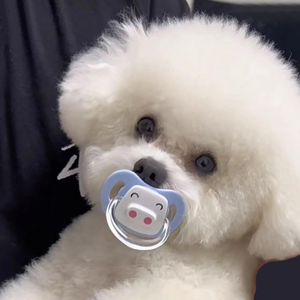 Pet Silicone Calming Pacifier, Dog Pacifiers for Small Dogs, Kitten Pacifiers, Puppy Teething Toys and Cat Chew Toys, Essential Pet Supplies, Puppy Essentials and Kitten Supplies (Blue Pig)