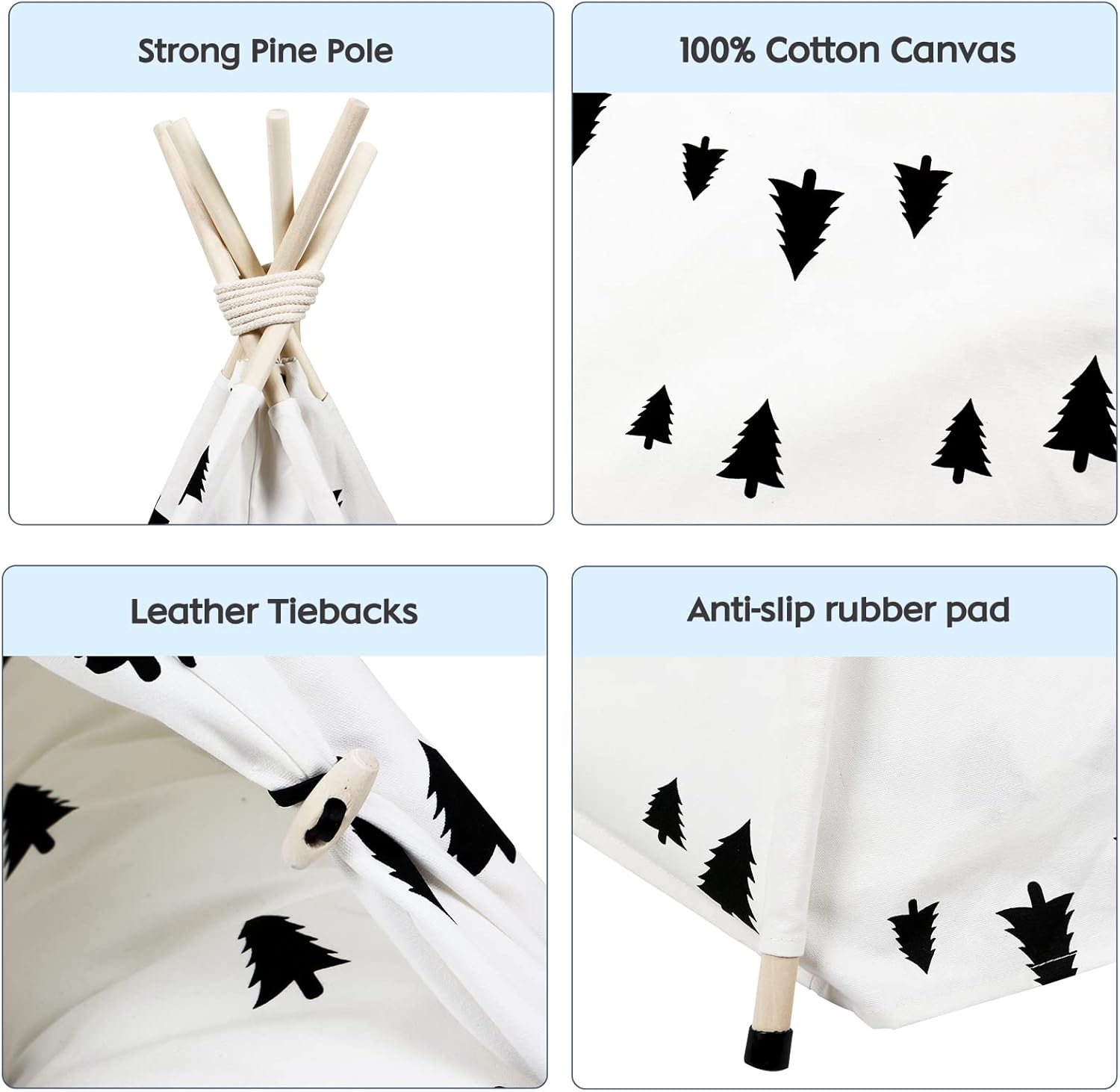 ✿Pet Teepee Material: This pet teepee bed is made of canvas and pine poles, which are breathable and durable, sturdy and smooth. It can be easily disassembled for cleaning or machine washing.