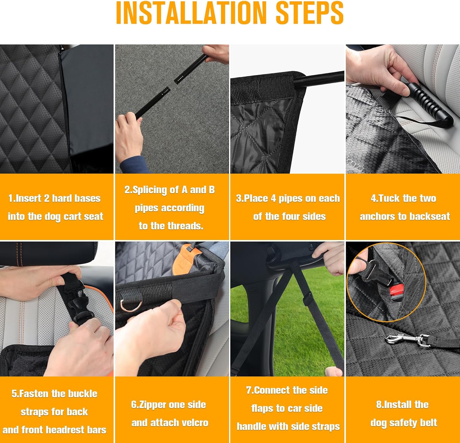 Spacious and Comfortable: The dog car seat extends 40% space in the back seat, built-in 4 sturdy hard bottom splice plates and 4 thick pieces of egg crate foam. Unlike the flimsy alternatives, our premium padding ensures your pet enjoys first-class comfort. Large dog car seat provide a larger and more comfortable resting space for pets.