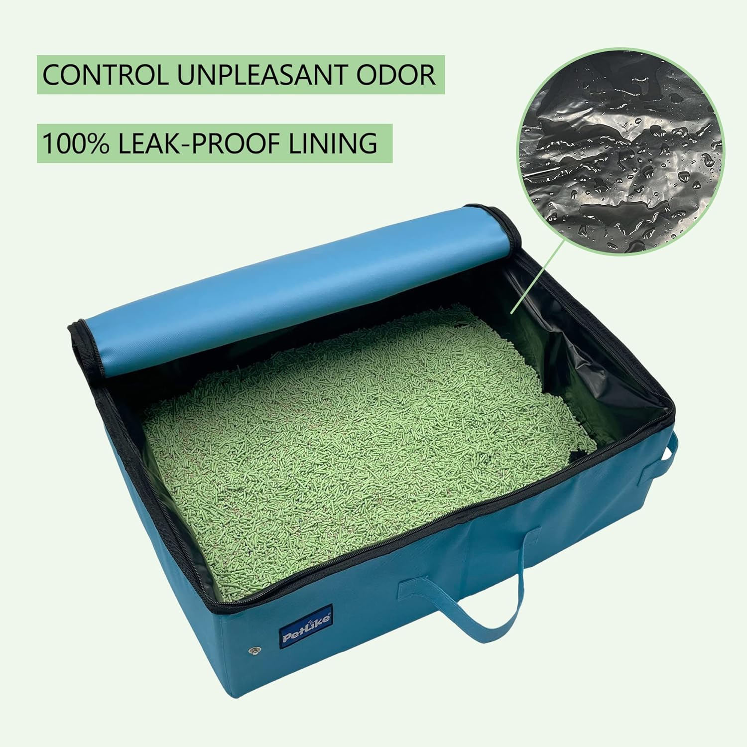 PetLike Travel Cat Litter Box, Leak-Proof Portable Litter Box, Collapsible Toilet Tray Carrier for Small Medium Cats (Large, Aqua Set)