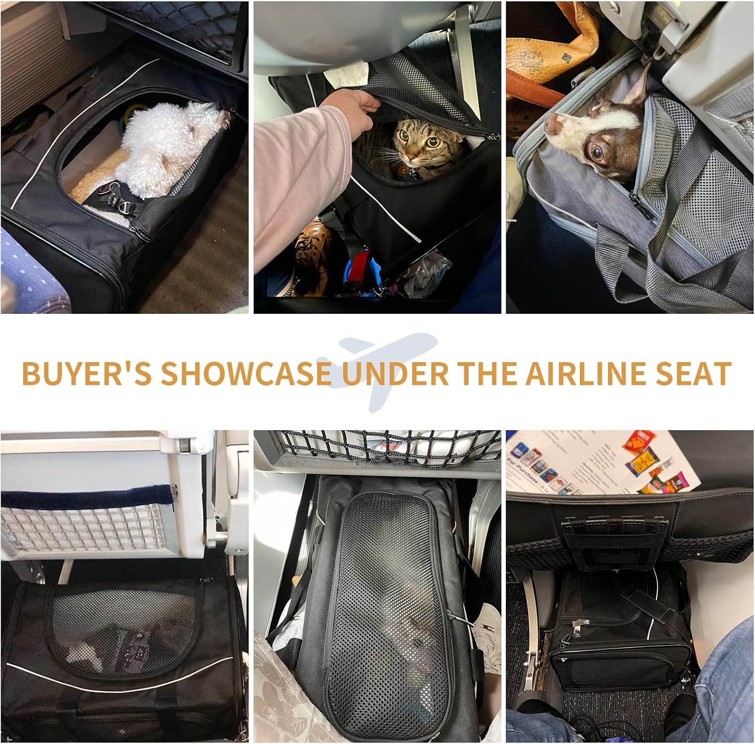 Check Size Before Buying: To fit under airline seats, airlines only allow small dogs and cats. We recommend that the pet size you carry be within 14″L x 9″H. Be sure to consider your pet’s length and height when selecting the appropriate carrier size. This cat carrier is specially designed for aviation use. For other scenarios, welcome to check out Petsfit’s in-car and other series