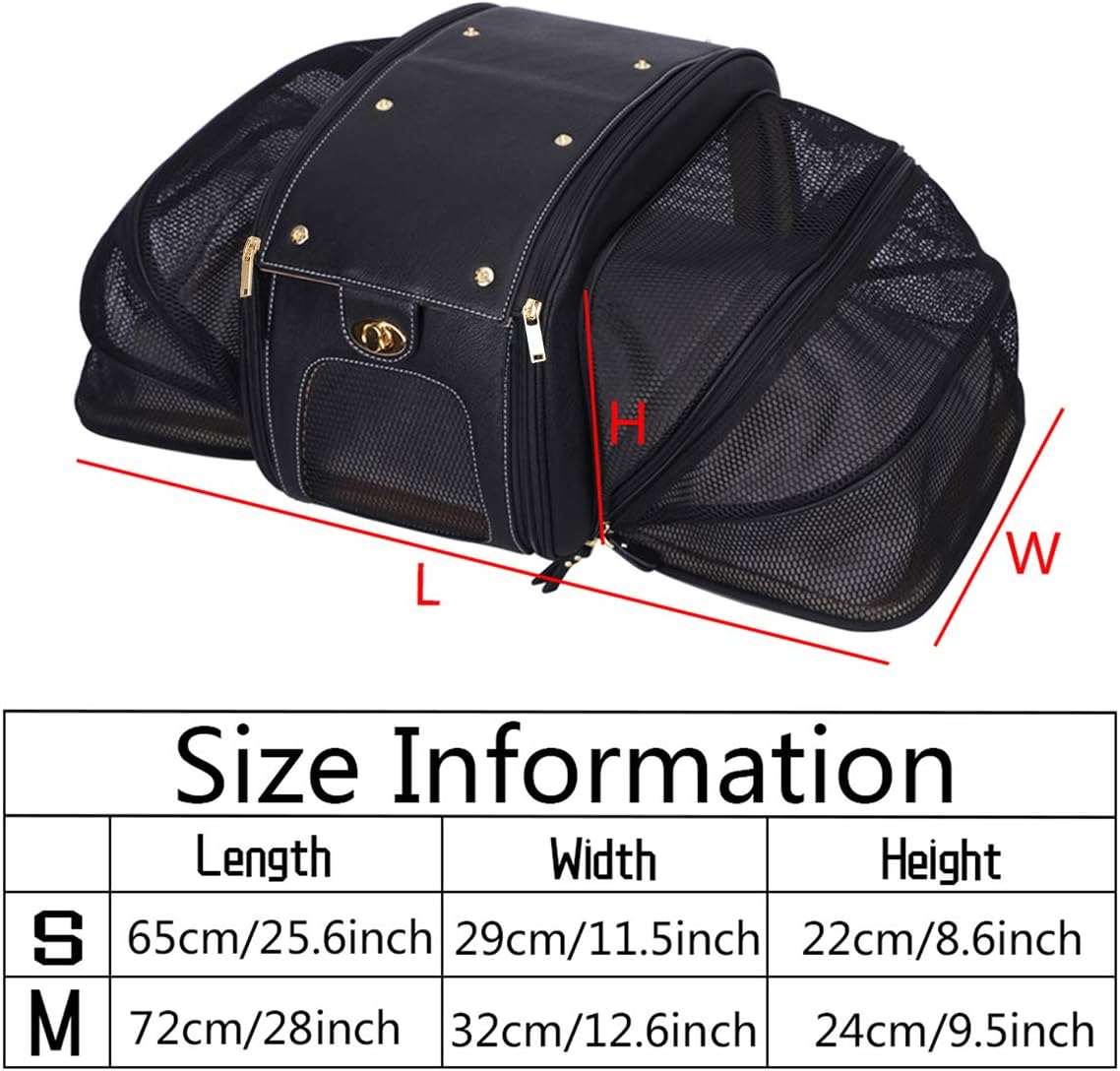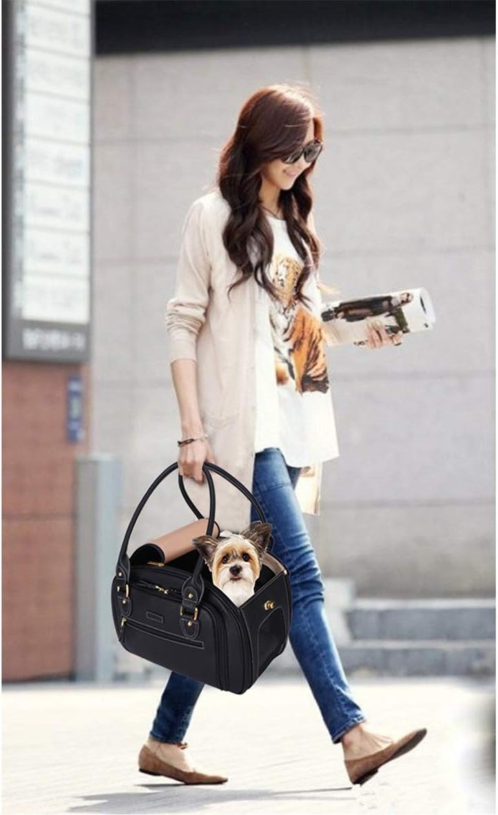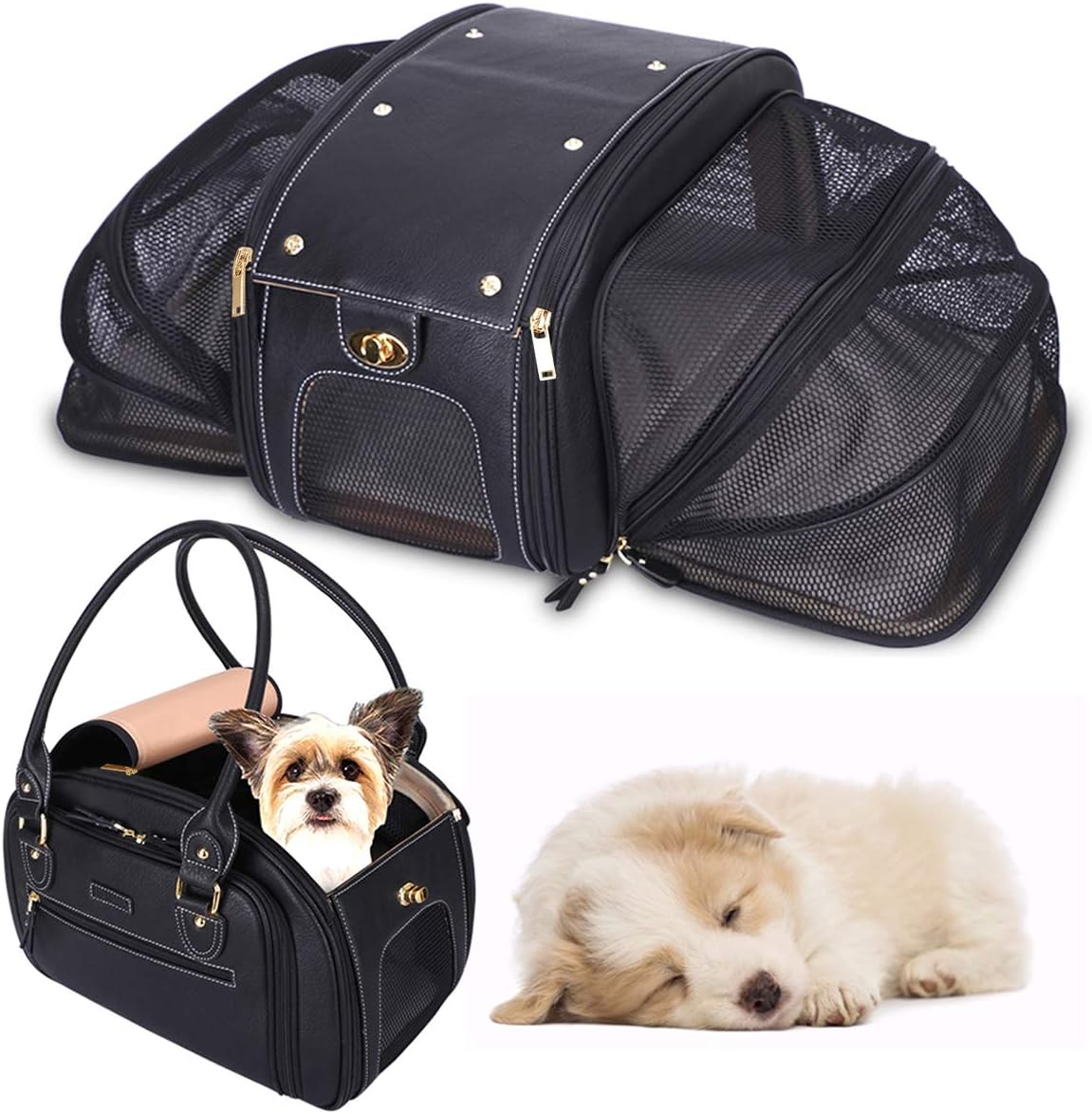 PetsHome Dog Carrier, Pet Carrier, Cat Carrier, Expandable Foldable Airline Approved Leather Pet Travel Portable Bag Carrier for Cat and Small Dog Home & Outdoor Small Black