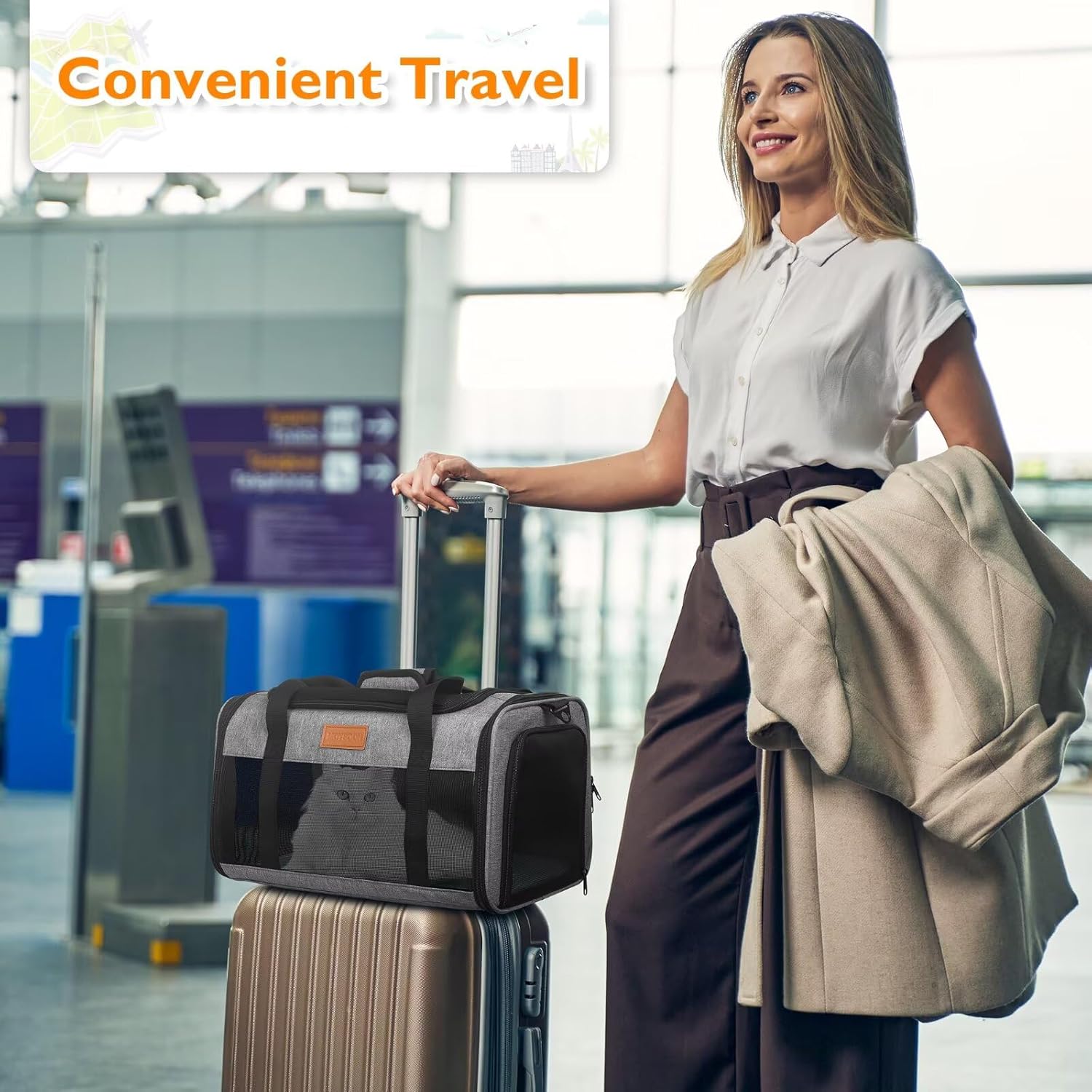 HASSLE-FREE TRAVEL: Designed with a luggage trolley strap, the PETUX cat travel carrier easily attaches to your suitcase, making travel stress-free. No need to carry your pet separately — simply roll your luggage with the top-loading cat carrier attached for hands-free convenience. Ideal for pet owners who travel with both pets and luggage
