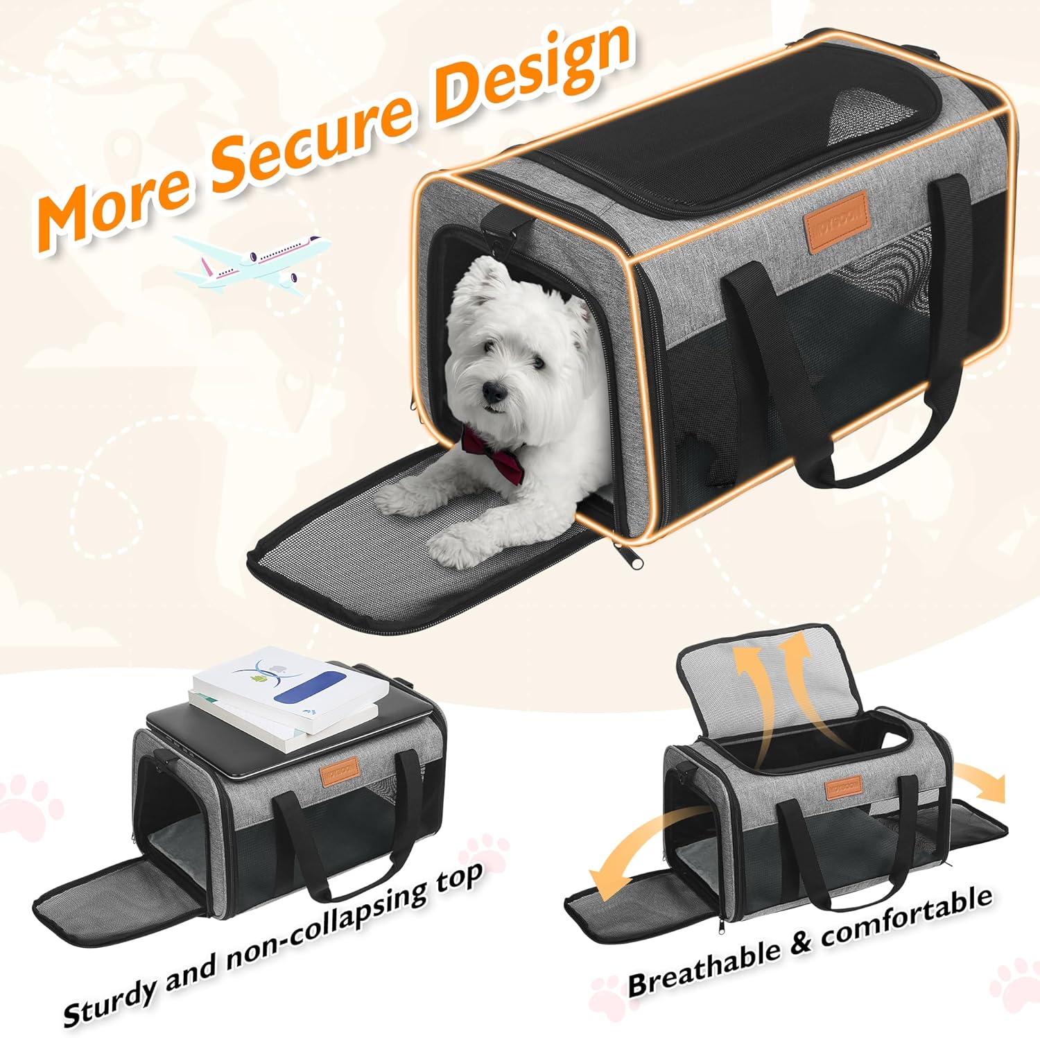 PETUX TSA Approved Pet Carrier in Cabin, 17″x11″x9.5″ Soft Cat Carriers for Small Cat up to 12 lb and Puppy up to 10 lb, Top Open Portable Pet Carrier Airline Approved for Travel and Vet Visit (Grey)