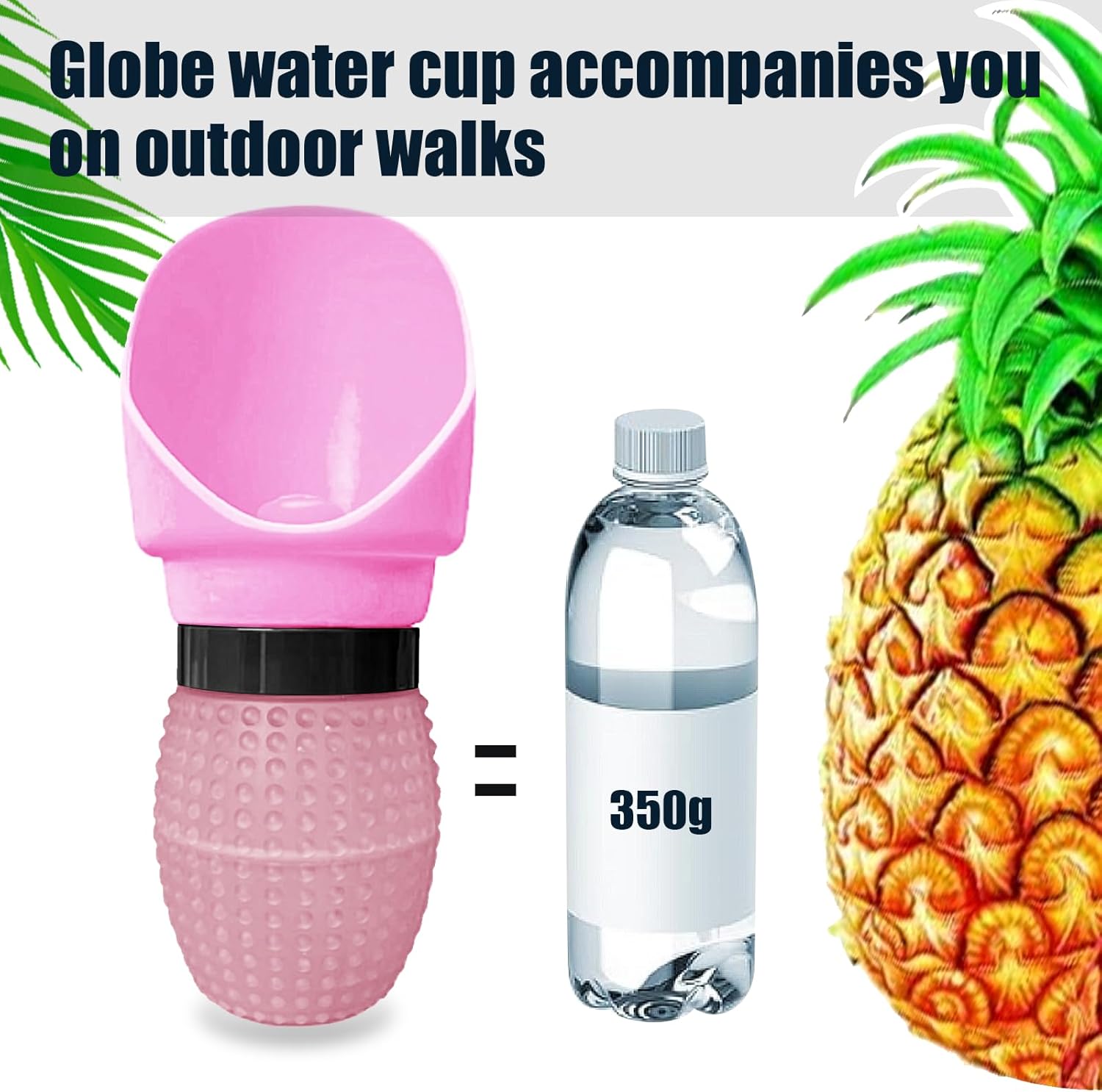 Pineapple Silicone Dog Water Bottle, Foldable Cup, 12.5oz