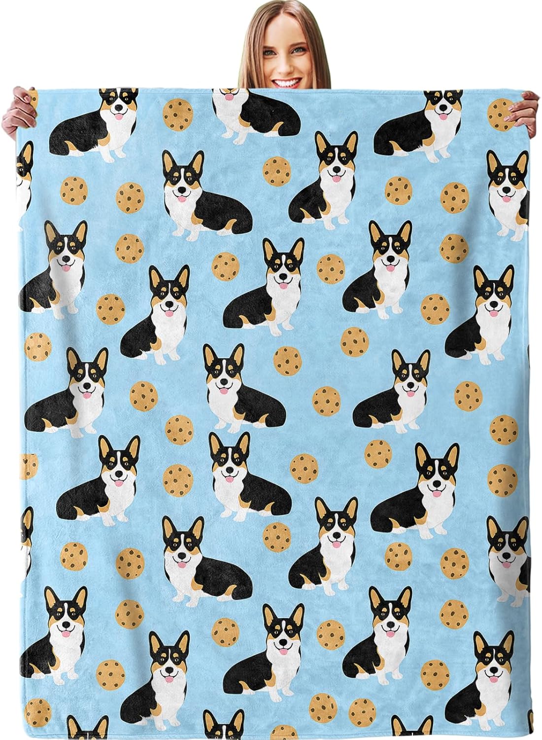 Playful Corgi Cookie Blanket, Plush Soft Lightweight Warm Cozy Flannel 60×50 inch Throw Blanket with Funny Puppy Dog Design for Couch, Travel, Bed, Outdoor, Gifts for Kids Teens Women Girls