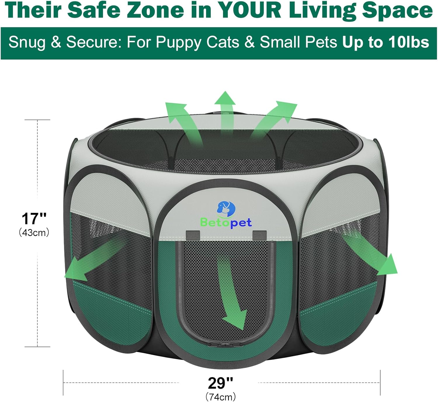 Size: (29″x29″x17″/ 74x74x43cm): Ideal for pets under 10 lbs (e.g., kittens, small rabbits).
