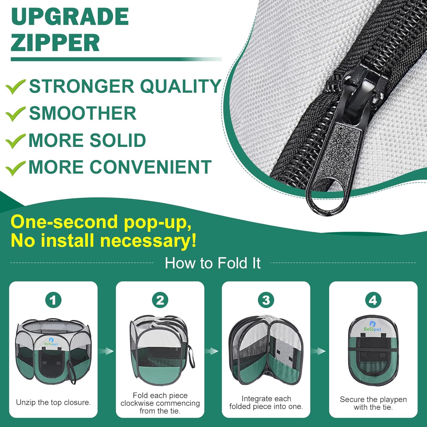 Playpen for Small Dogs Cats Crate: Puppy Play Pen Indoor Outdoor Foldable Potable Exercise Cage Pop up Kennel for Guinea Pig Rabbits Hamster Travel with Carrying Case & Food Bowl (Green, S, 1)