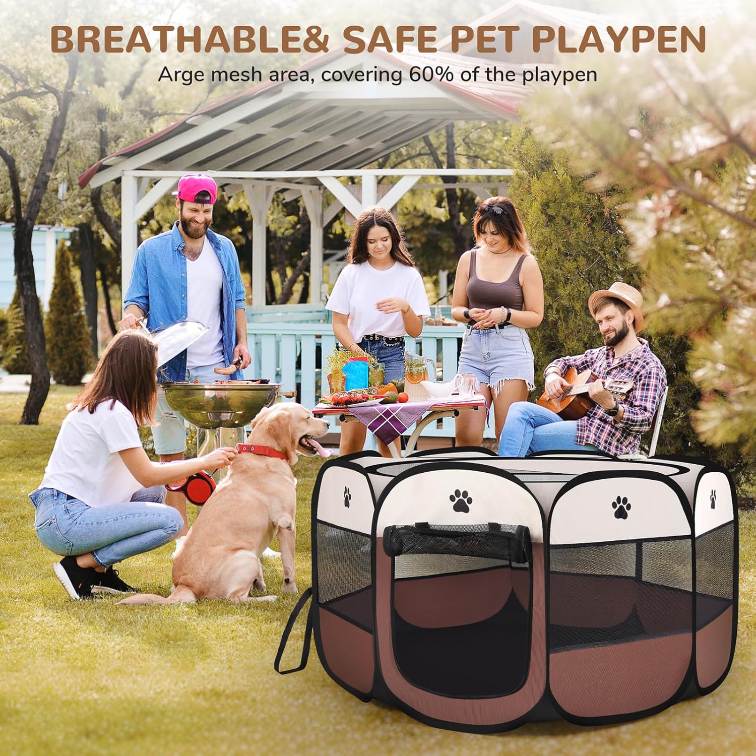 Pop-up Playpen for Puppy, Portable and Foldable Exercise Kennel Tent Crate Indoor/Outdoor Travel Camping, Removable Zipper Top
